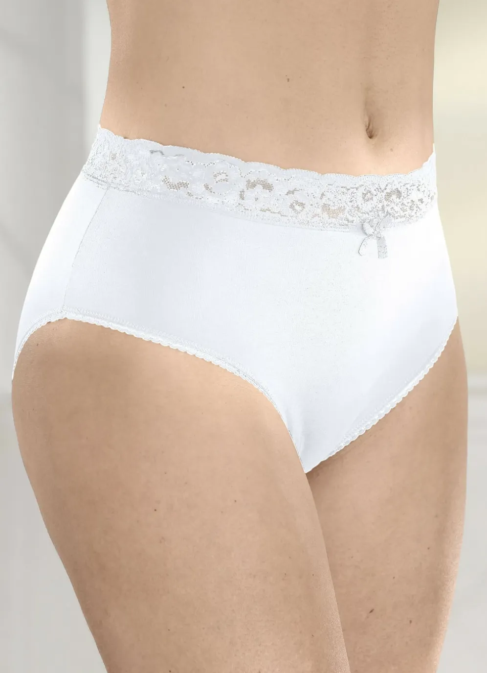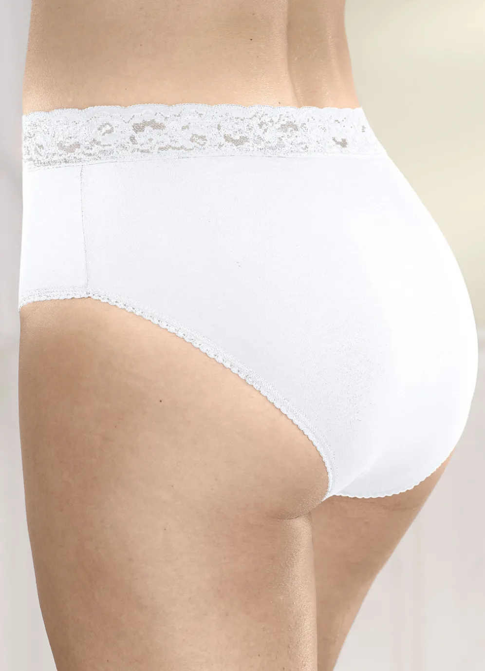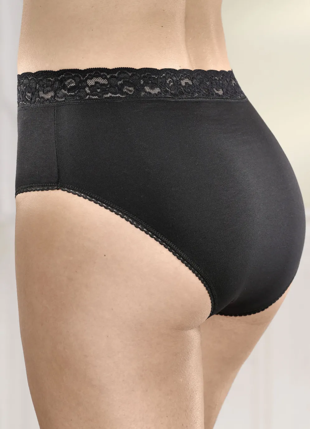 Viererpack Slips mit elastischem Spitzenbund in 2X Schwarz, 2X Weiss und in Größe 44.