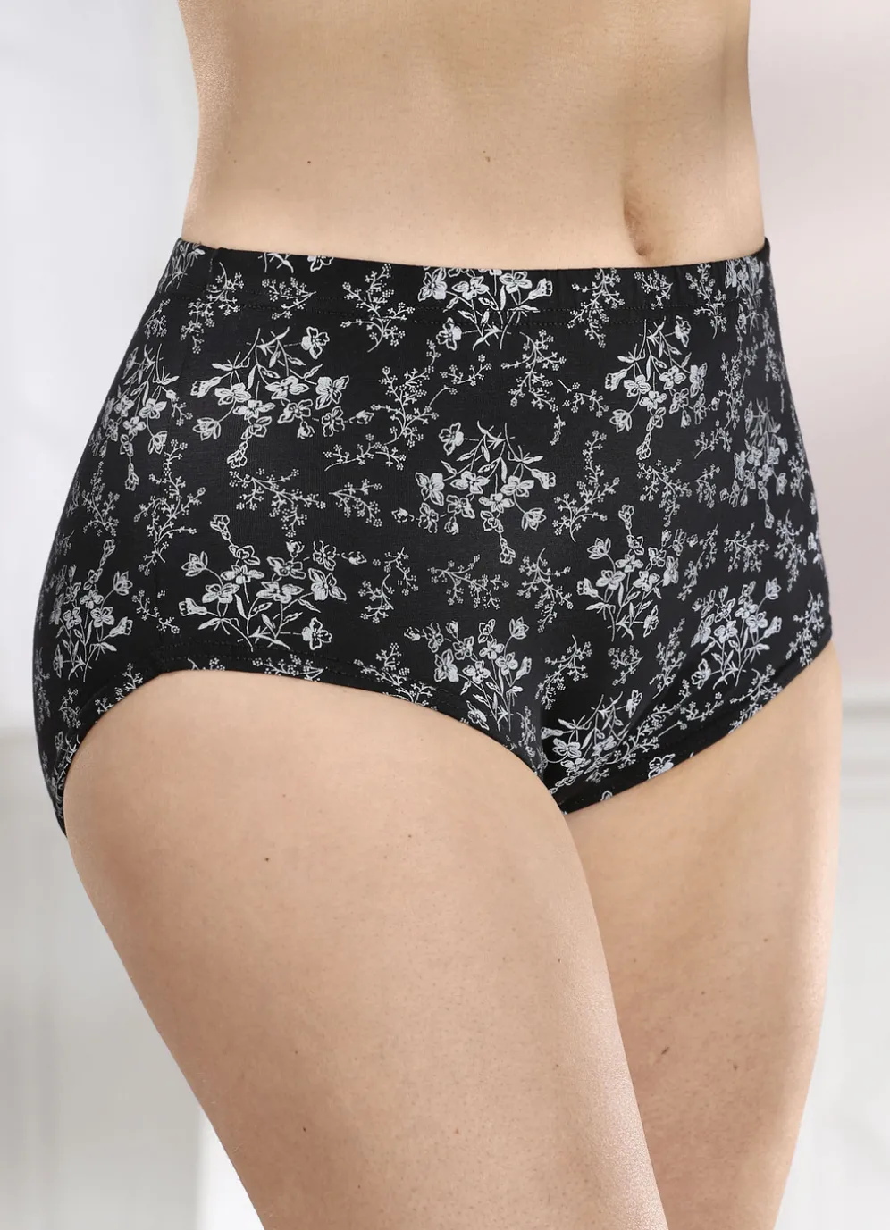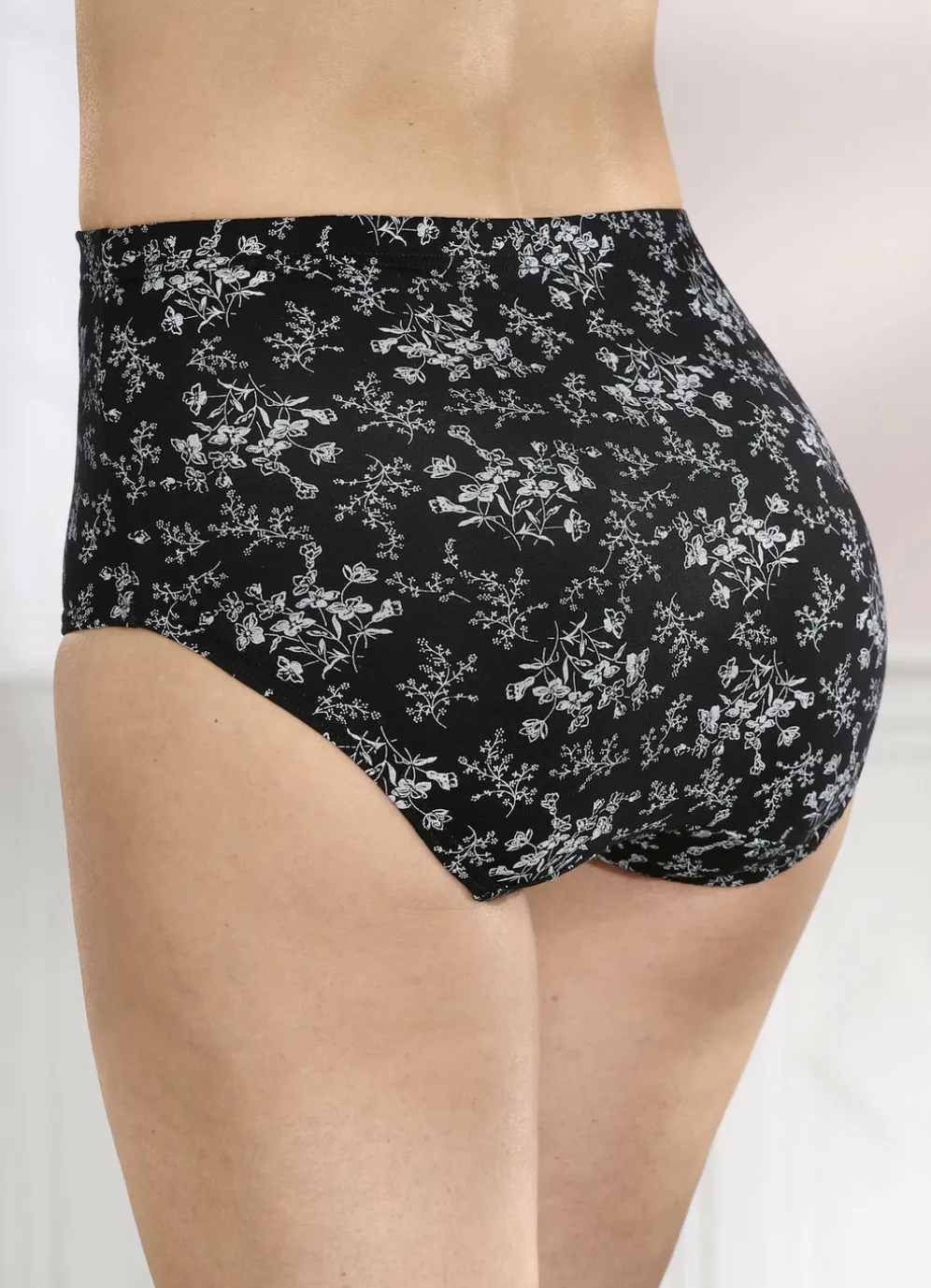Slip in Schwarz, mit silbergrauem Floraldessin sowie Gummizug im Bund.