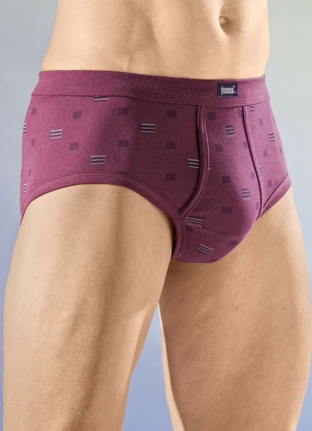 Viererpack Slips mit Softbund in 2X Rubinrot-Bunt, 2X Hellgrau-Bunt und in Größe 5.