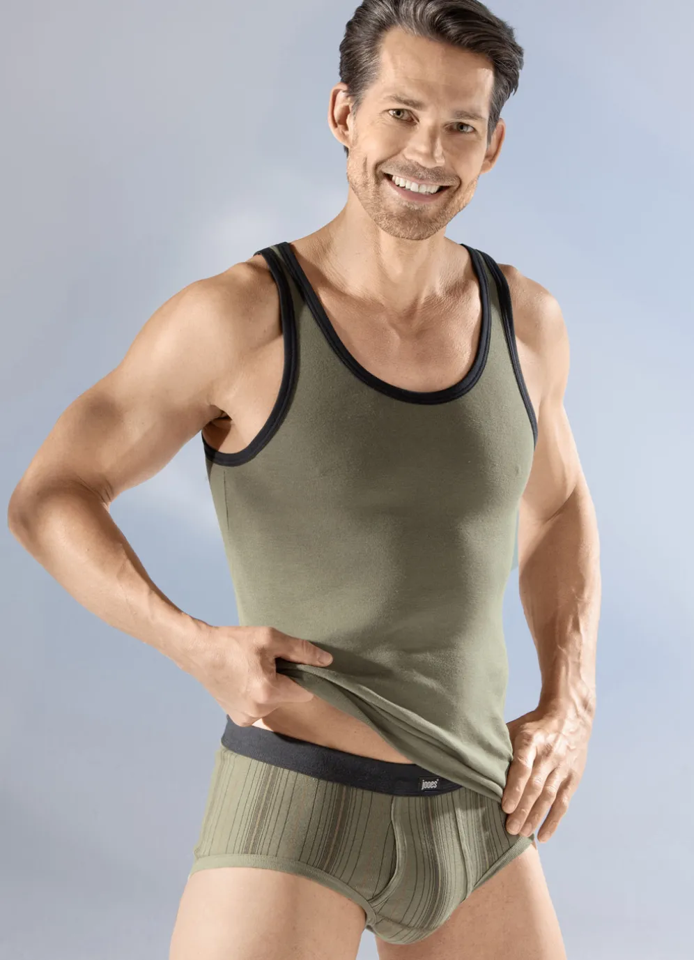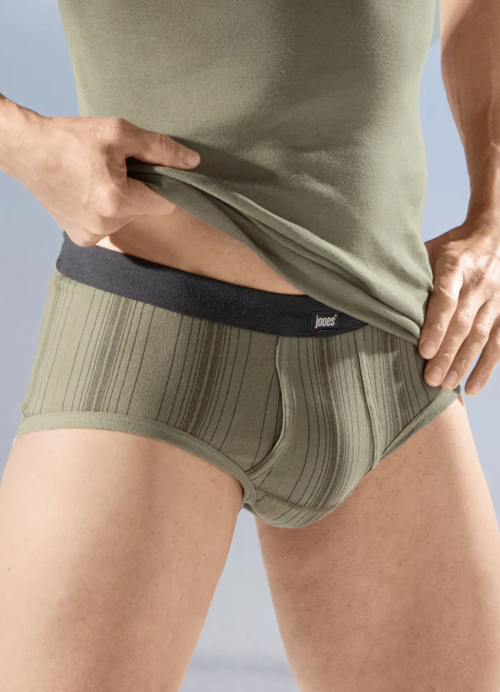 Viererpack Slips mit Softbund in 2X Oliv-Bunt, 2X Dunkelgrau-Bunt und in Größe 6.