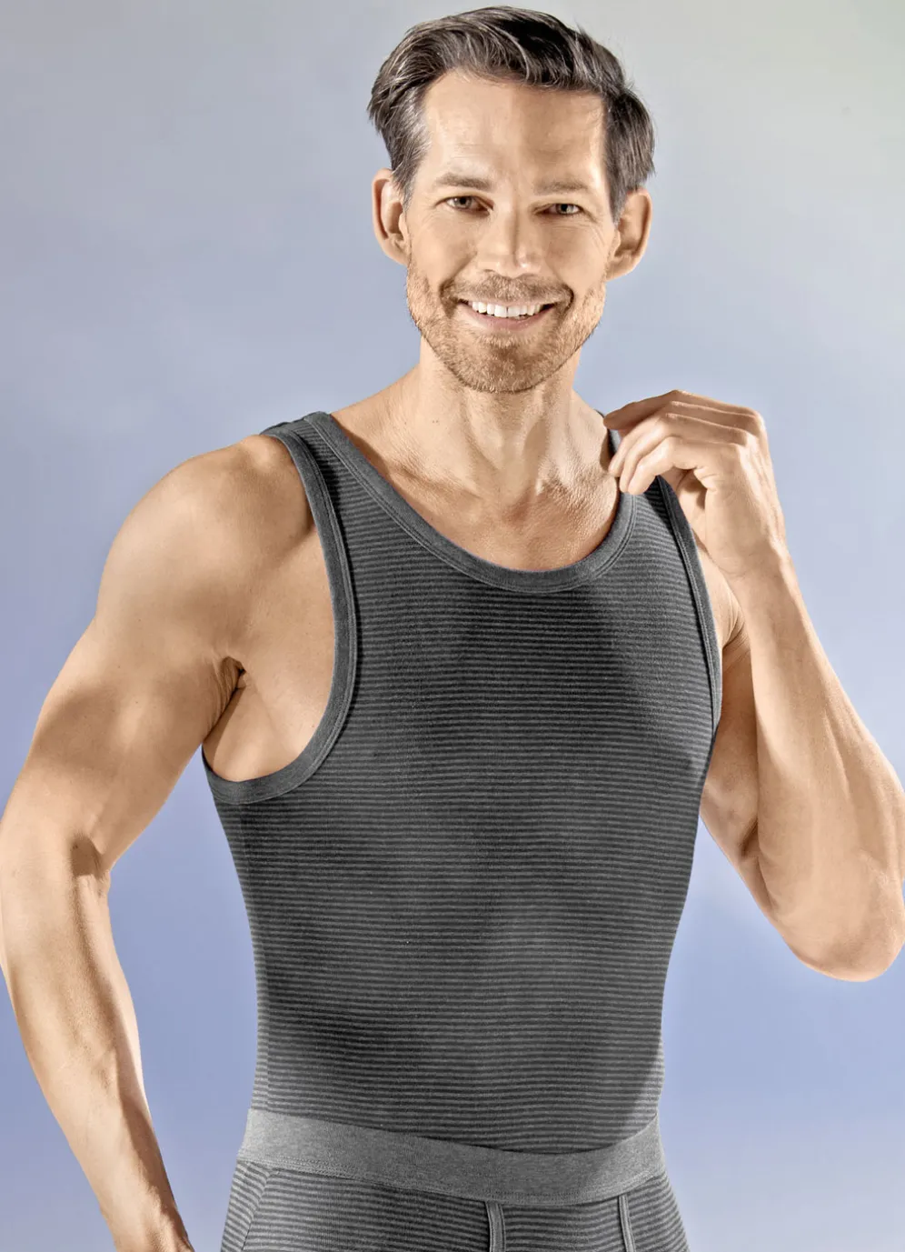 Die Qualität: Feinripp aus 70% Baumwolle, 30% Polyester.