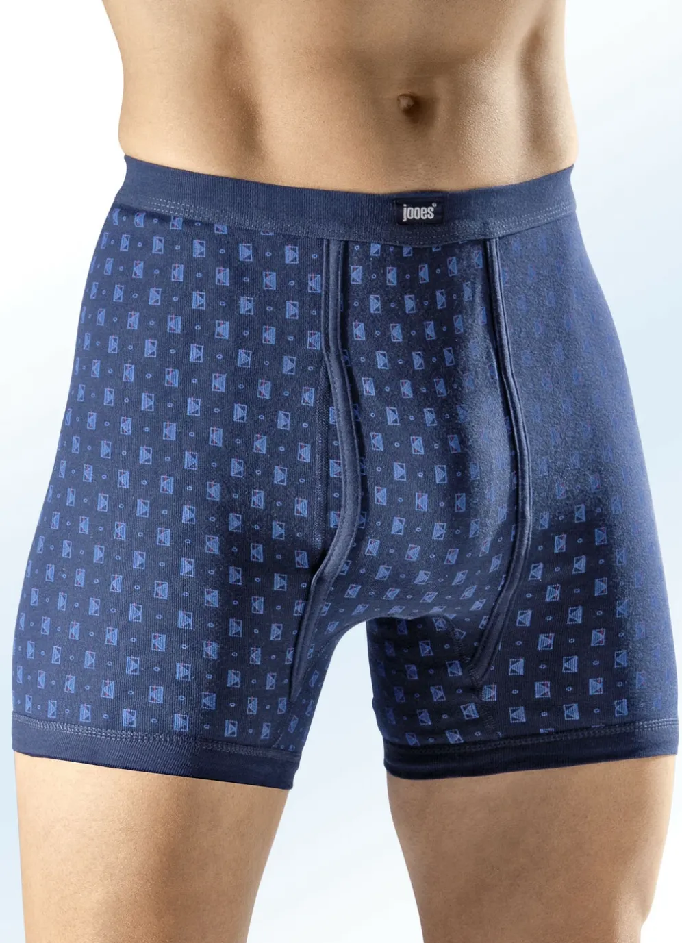 Viererpack Unterhosen, allover dessiniert in 2X Marine-Bunt, 2X Jeansblau Meliert-Bunt und in Größe 5.