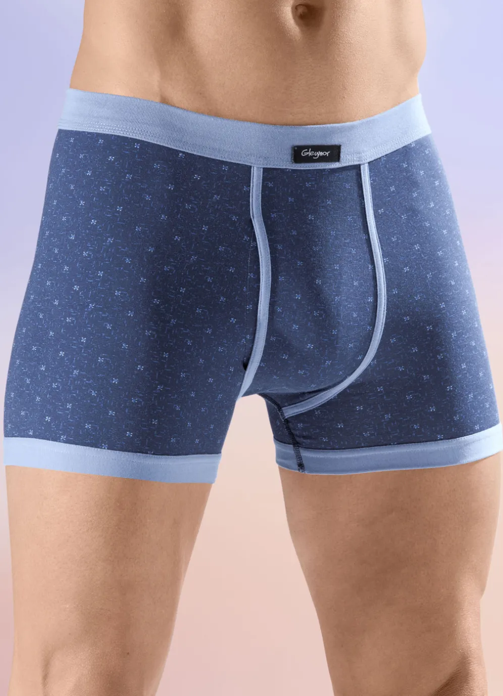 Viererpack Unterhosen mit Alloverdessin in 2X Marine-Hellblau, 2X Hellblau-Marine und in Größe 6.