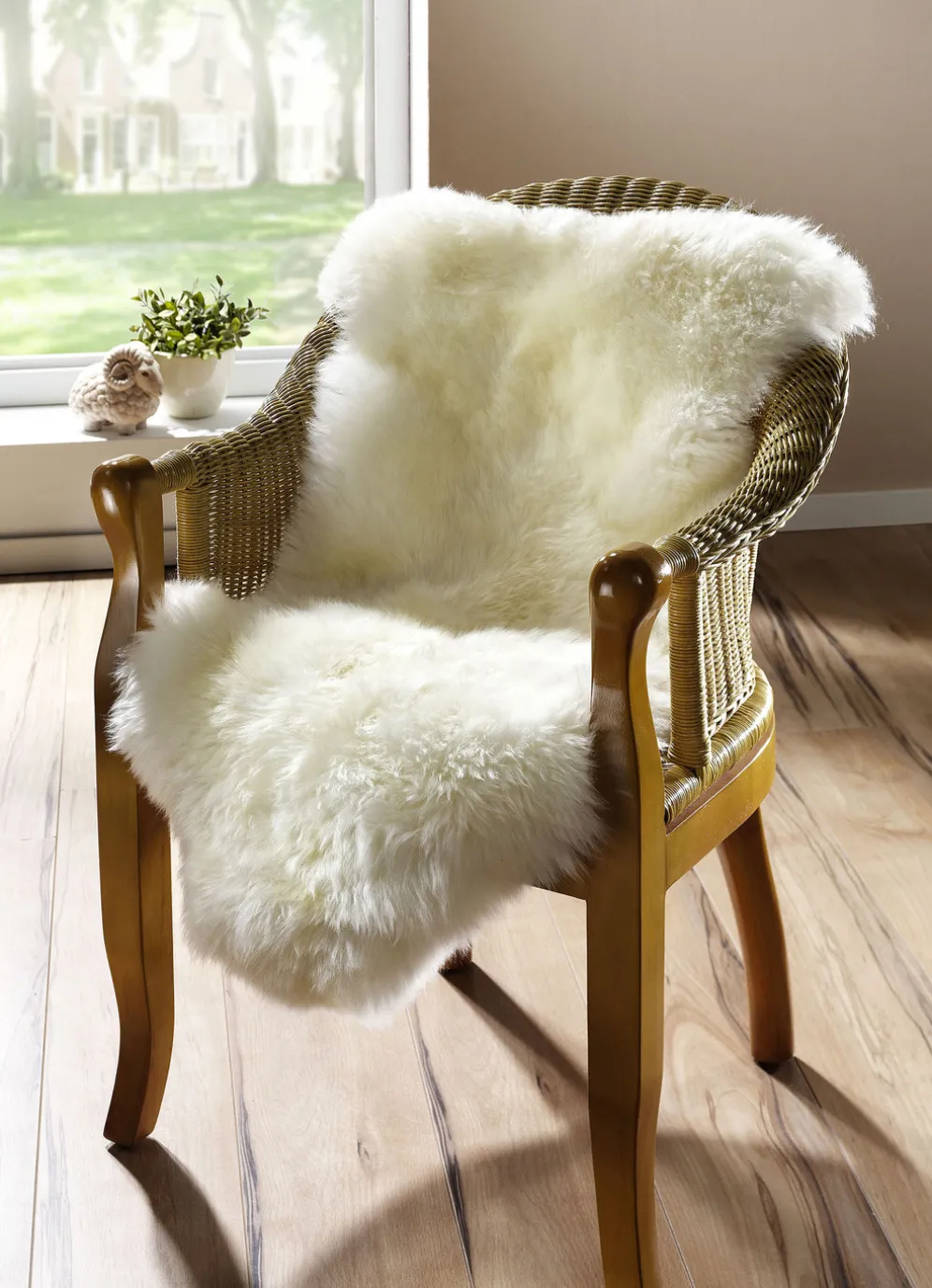 Vorleger aus echtem Merino-Lammfell in Größe 001 (Vorleger, Länge ca. 80 cm) und in Naturweiss.