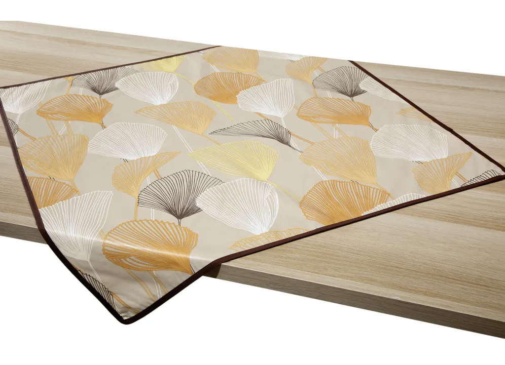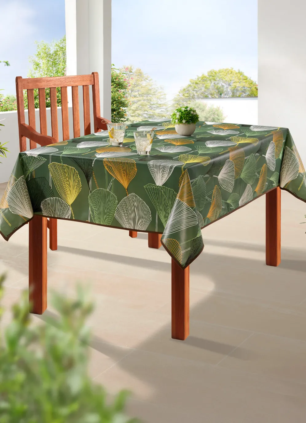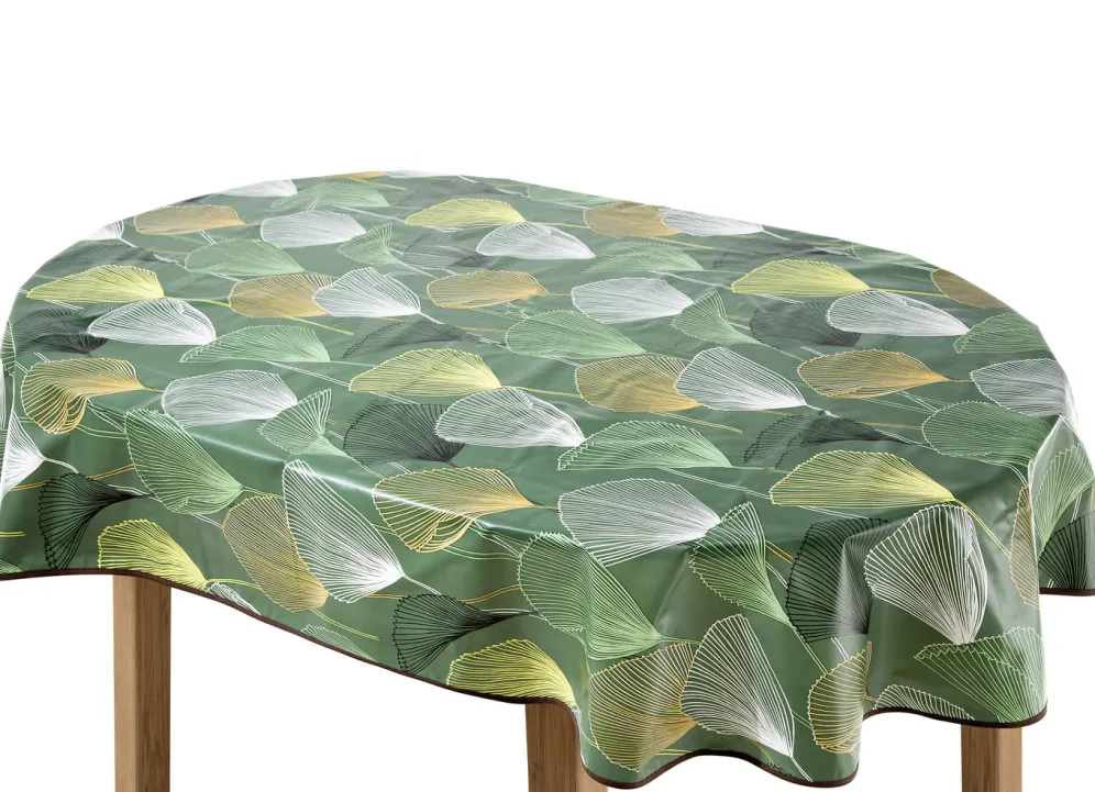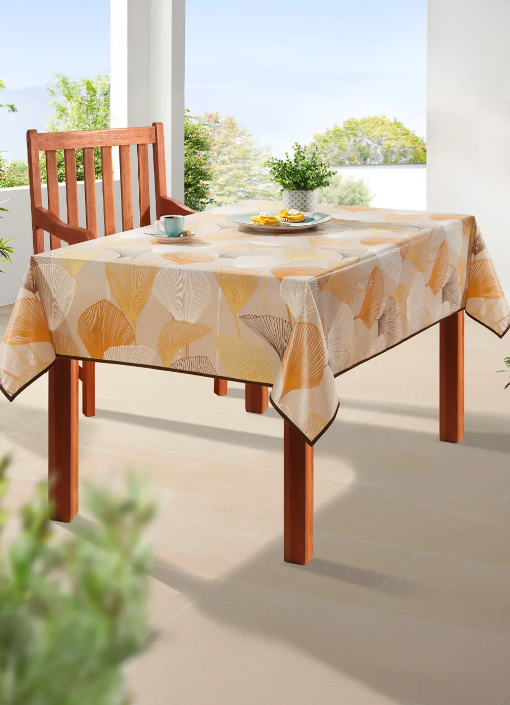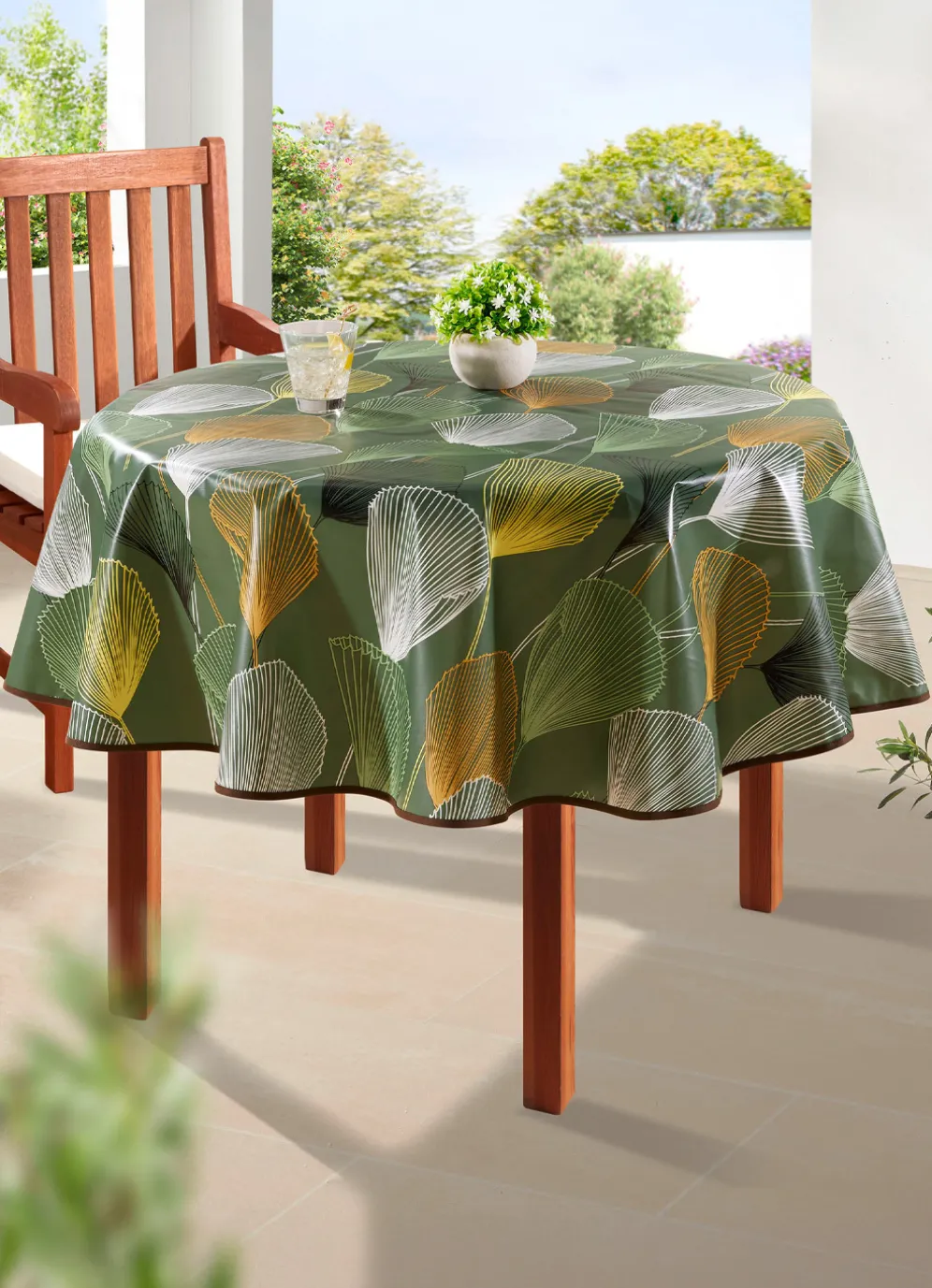Eine Vielzahl an Ginkgo-Blättern präsentiert sich auf dieser schönen Wachstuch-Tischdecke. Ganz einfach abwaschbar und somit für jede Gelegenheit – auch für den Einsatz im Freien – bestens geeignet. Mit farblich angepasstem Paspelband. Die Qualität: 100% Polyvinylchlorid, phthalatfrei.
