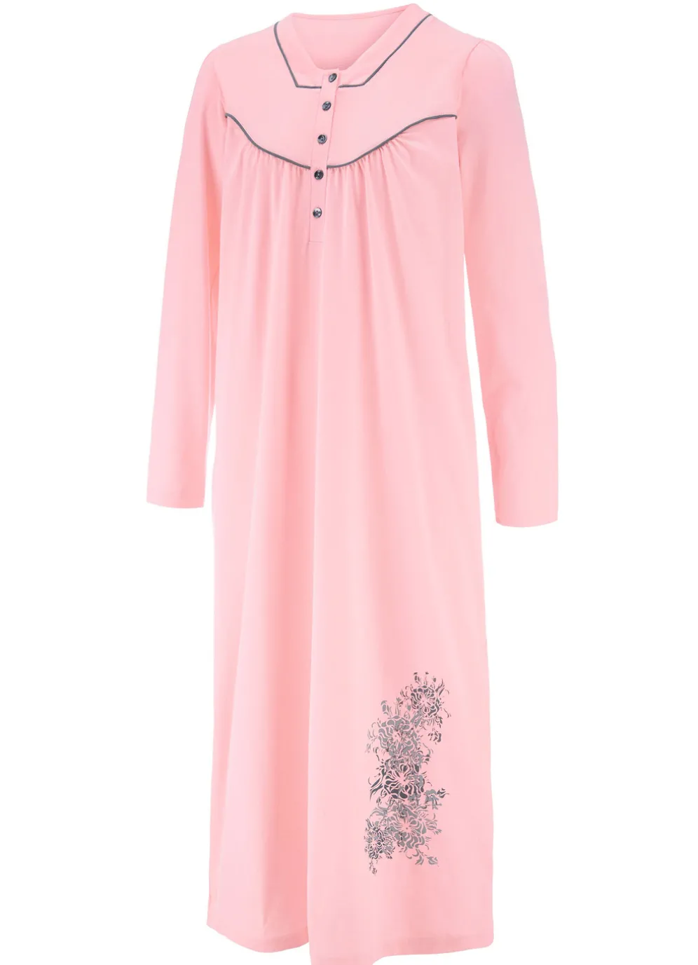 Wadenlanges Nachthemd mit Kontrastpaspeln an der eckigen Ausschnittblende und der Vorderpasse,