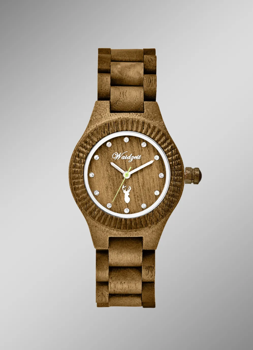 Bestellen Sie jetzt die Waidzeit-Damenuhr komplett aus Walnussholz und genießen Sie die Zeit mit einem Stück Natur an Ihrem Handgelenk!