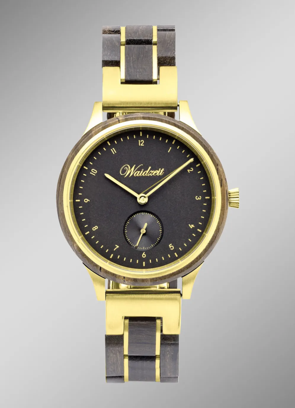 Die Mystik Gold Damenuhr von Waidzeit unterstreicht einen Lifestyle der auf das Besondere setzt und Wertigkeit von Handwerk, Tradition aber auch Neuem wertschätzt!