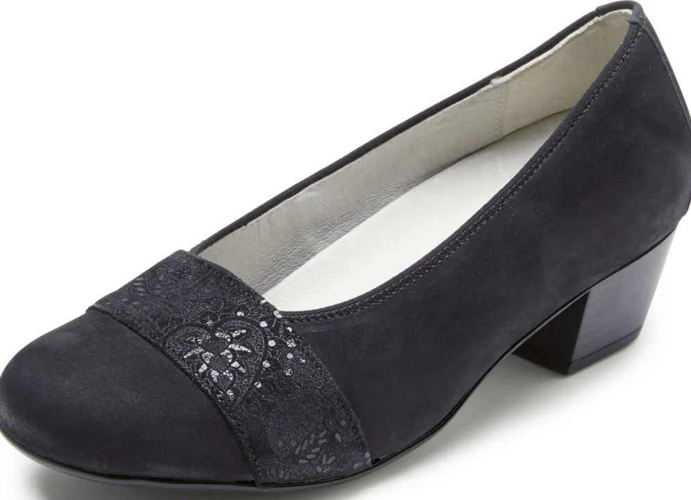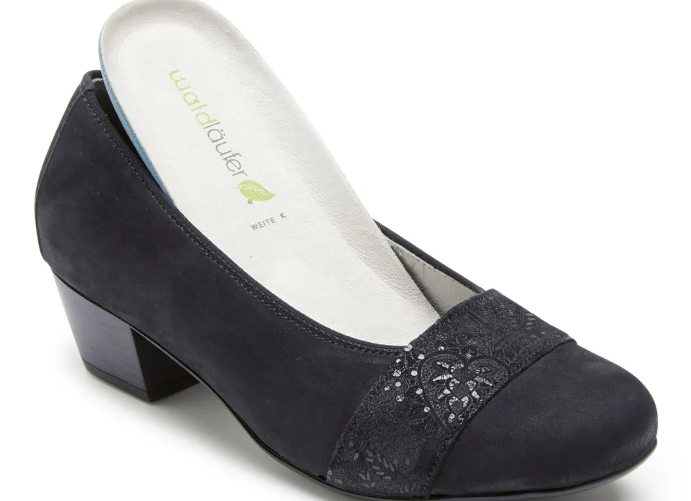 Waldläufer, bequeme Damen-Pumps, Weite K, mit herausnehmbarem Fußbett in Schuhgröße 4 und in Schwarz.
