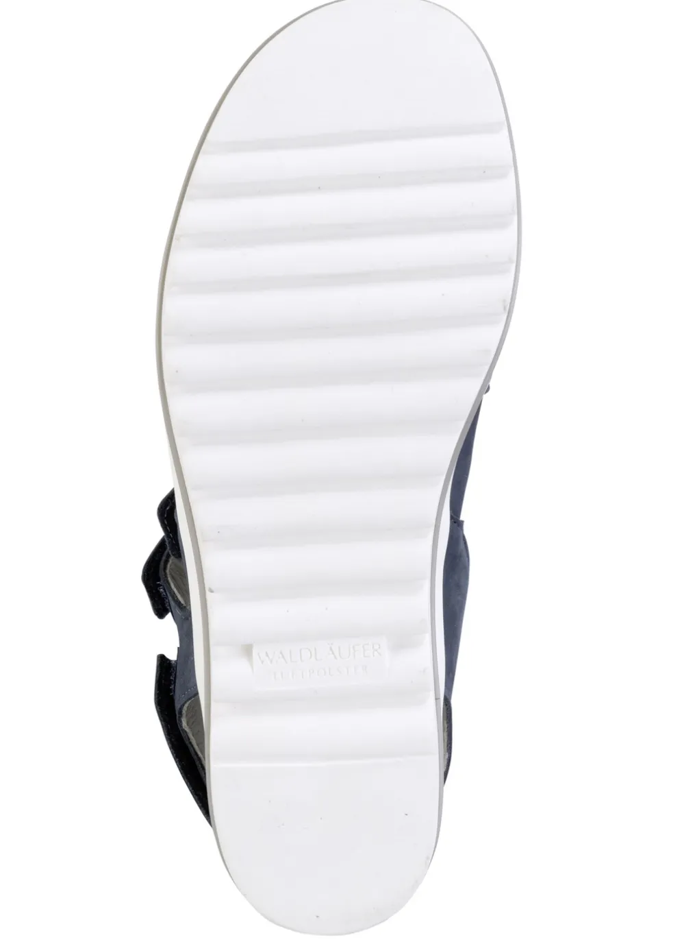 Waldläufer, bequeme Damen-Sandalen, Weite H, mit herausnehmbarem Fußbett in Schuhgröße 3 1/2 und in Jeansblau.