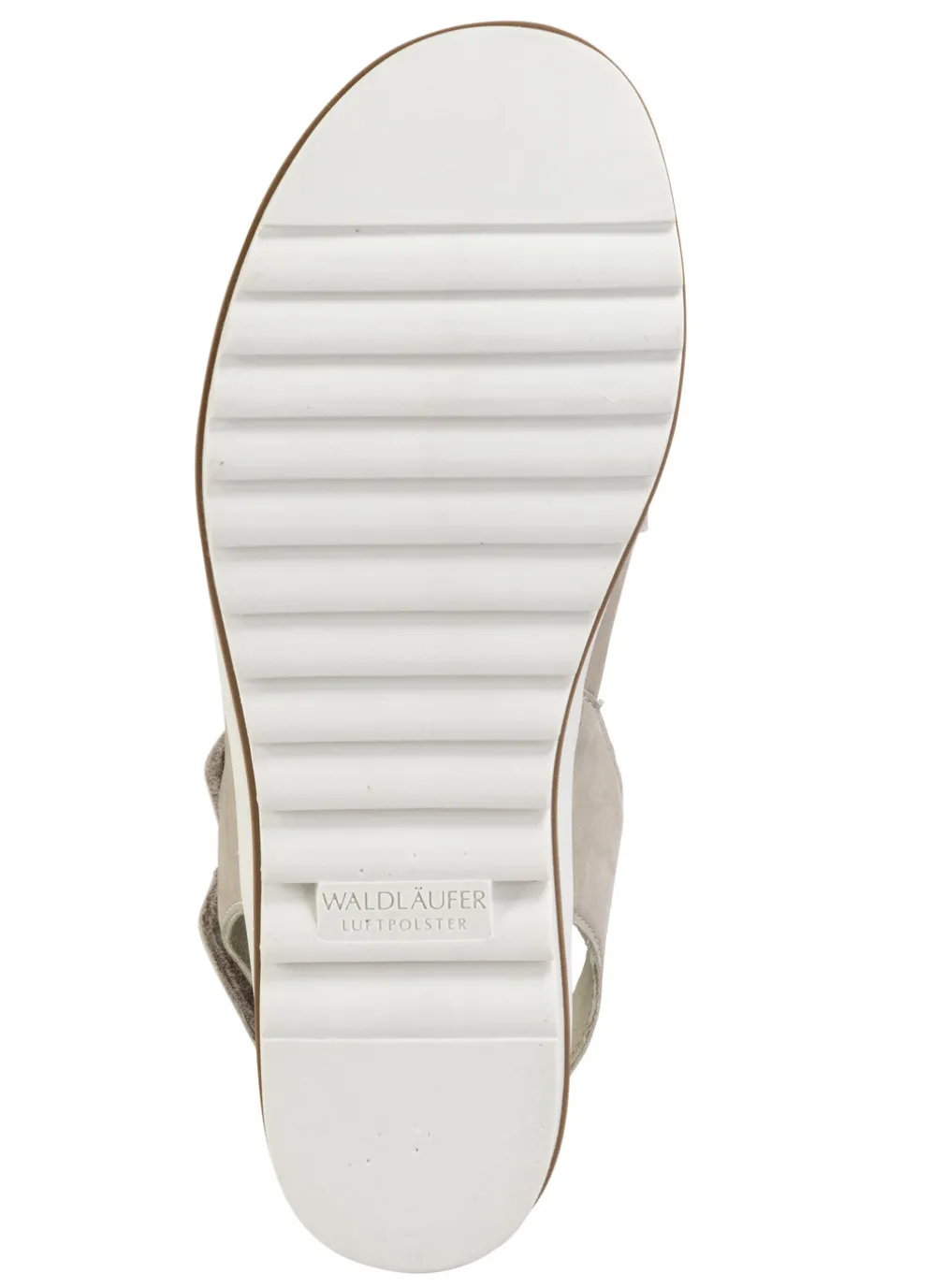 Sandalen aus edlem Rind-Nubukleder, in Weiß aus genarbtem Nappaleder: Weite H, vier verstellbare Klettspangen, Lederfutter, herausnehmbares Lederfußbett, TR-Luftpolster-Profilsohle sowie 20 mm Keilabsatz.