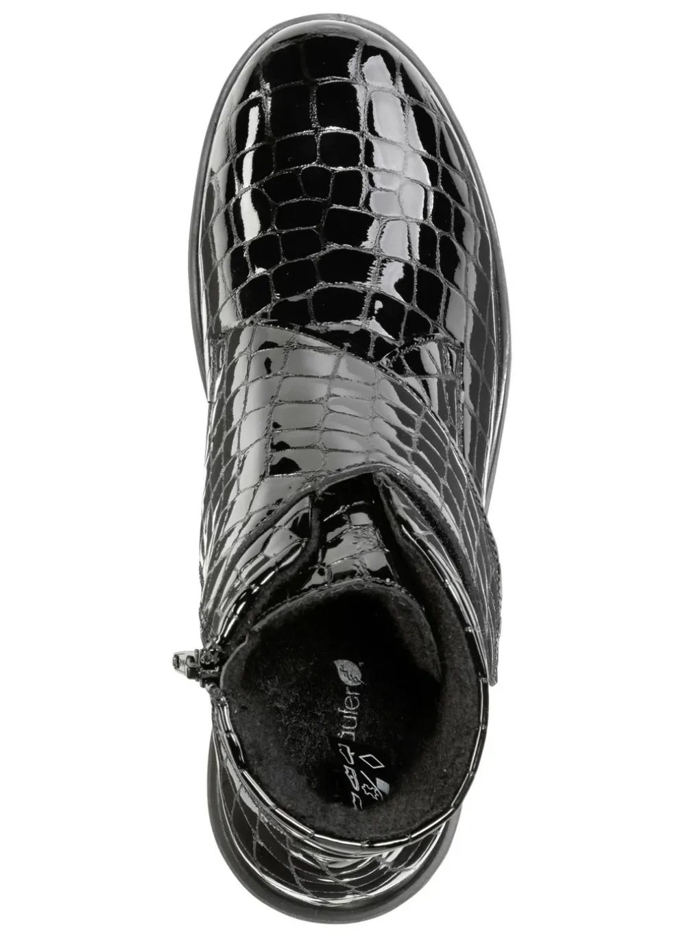 Waldläufer Bootie aus krokogeprägtem Lackleder in Schuhgröße 4 und in Schwarz.