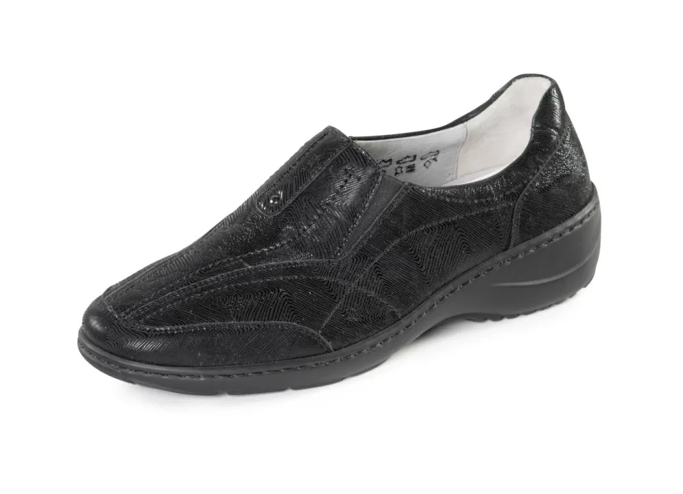 Waldläufer, komfortable Damen-Slipper, Weite K, mit herausnehmbarem Fußbett in Schuhgröße 4 und in Schwarz.