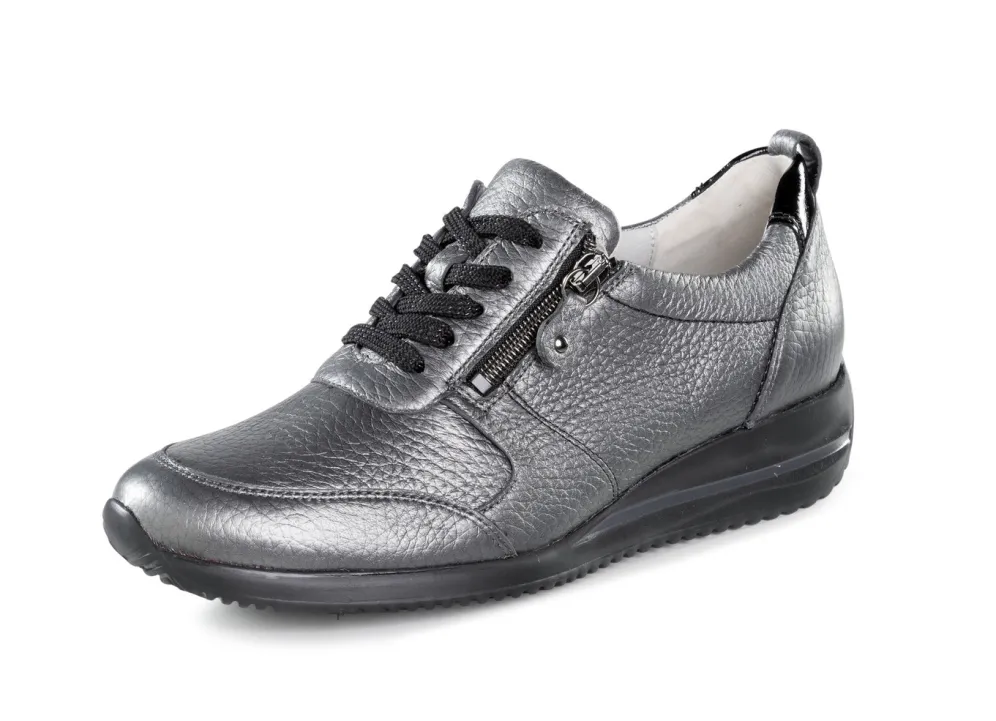 Superleichte Sneaker aus weichem, genarbtem Hirsch-Nappaleder: in Weite H, Schnürung, praktischer Seitenreißverschluss, ledergefüttertes Quartier, herausnehmbares Lederfußbett, EVA-Riffelsohle sowie 25 mm Keilabsatz