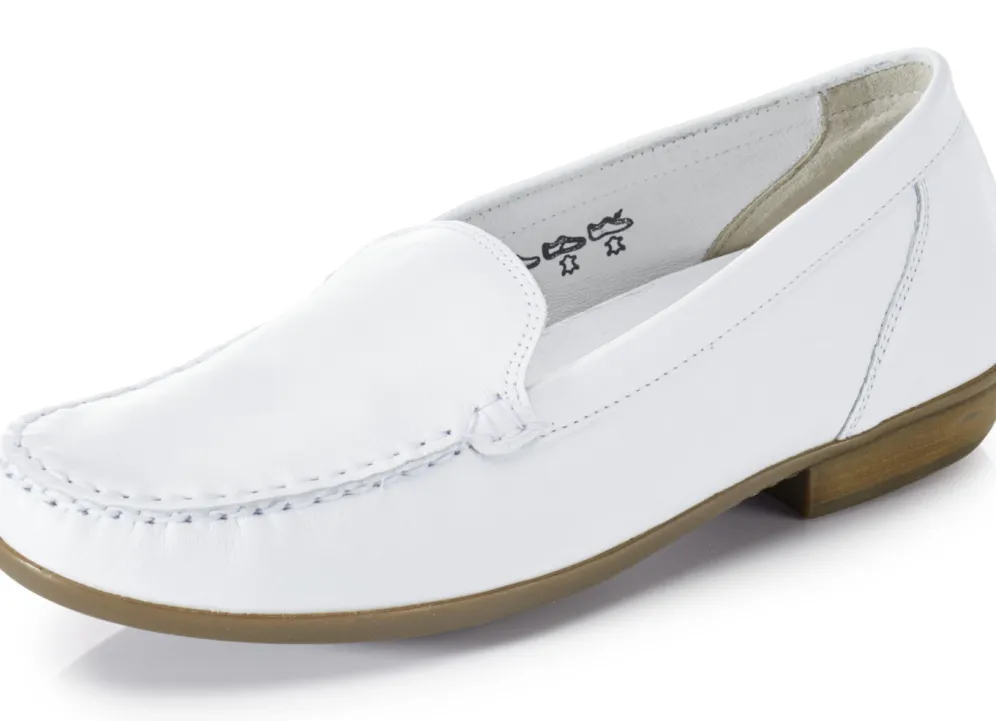Waldläufer Mokassin-Slipper aus edlem Rind-Nappaleder in Schuhgröße 5 und in Weiss.