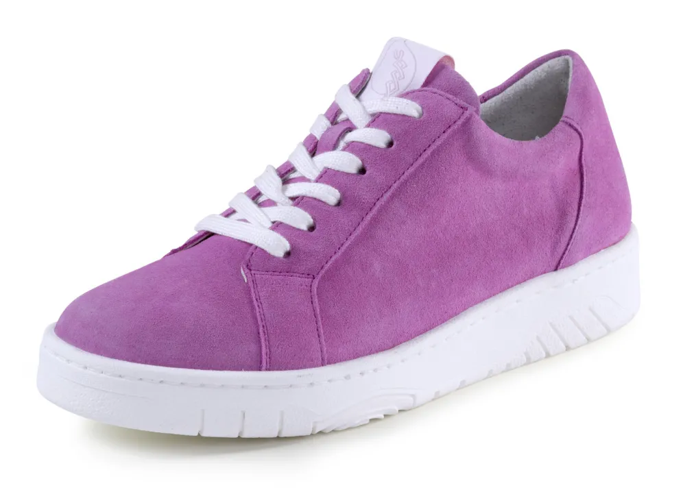 Trendiger Sneaker aus bestem Veloursleder, mit Schnürung: Weite H, Futter, herausnehmbares Fußbett, leichte TR-Luftpolster-Plateausohle sowie 10 mm Keilabsatz