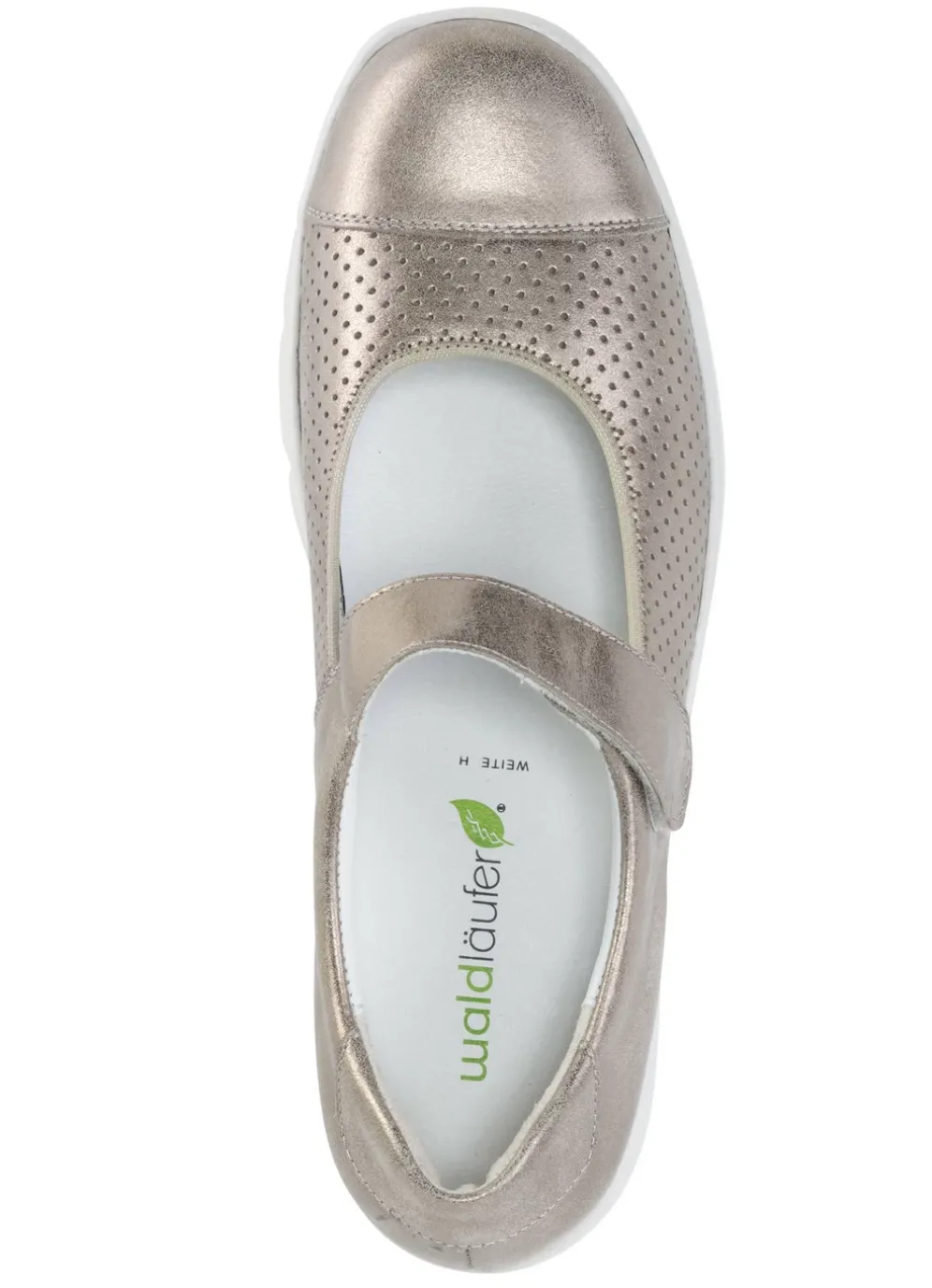 Waldläufer Spangenschuh aus teilweise gelochtem Leder in Schuhgröße 4 und in Bronze.