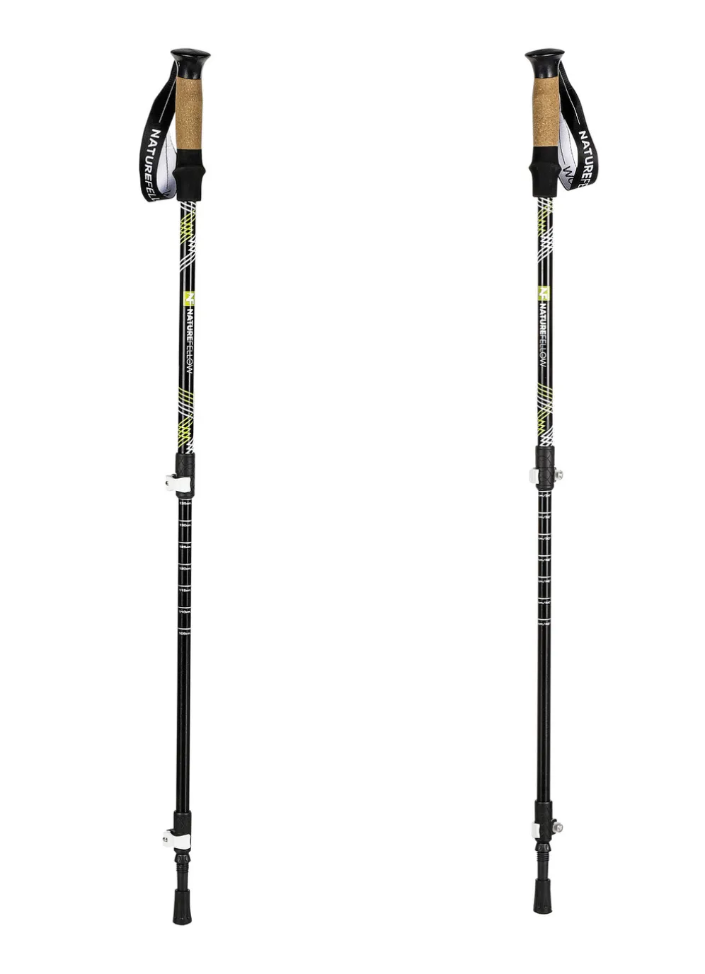Spazieren gehen und Wandern hält fit! Diese Wanderstöcke bestehen aus Aluminium, sind stufenlos einstellbar von ca. 65 bis 135 cm und bieten Ihnen sicheren Stand. Die ergonomisch geformten Griffe aus Kork sind rutschfest. Das integrierte Band für das Handgelenk gibt zusätzlichen Halt. Für Personen mit einer Körpergröße von 112 – 198 cm geeignet. Folgende Aufsätze sind enthalten: Asphalt-Aufsatz, Aufsatz für steiniges Gelände, Nordic Walking Aufsatz, Schlamm-Teller und Schnee-Teller. Inkl. praktischer Tragetasche.