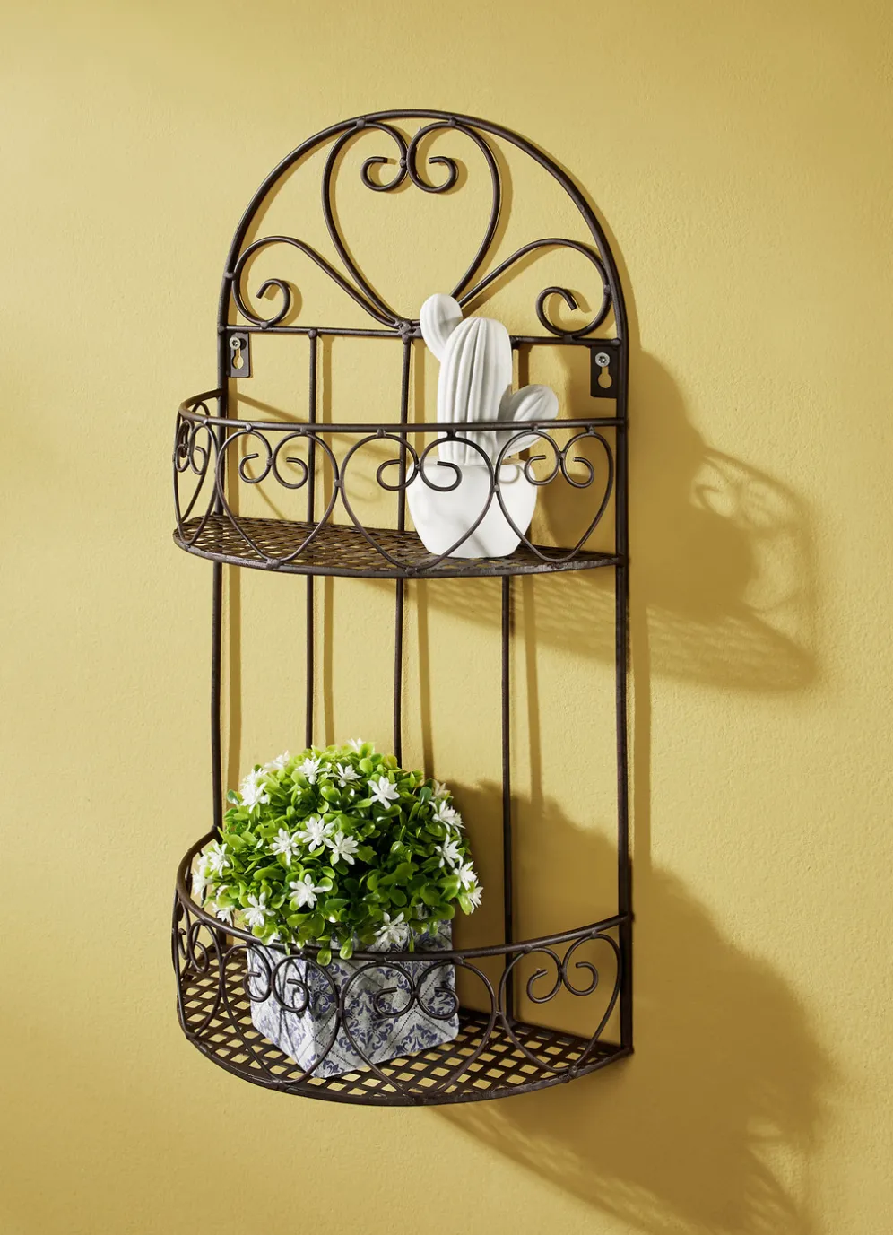 Wandregal aus Eisen mit antiquarischem Charakter in Antikbraun.
