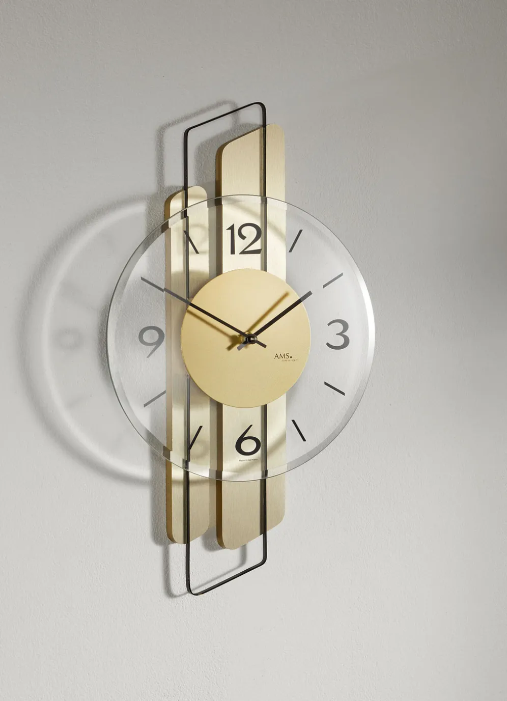 Wanduhr mit präzisem Quarzuhrwerk in Gold.