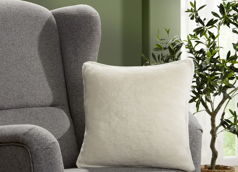 Webpelzdecke und Kissenbezug aus Alpakawolle in Größe 905 (Kissenbezug, 40x 40 cm) und in Natur.