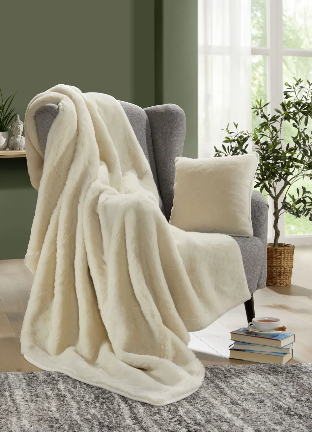 Webpelzdecke und Kissenbezug aus Alpakawolle