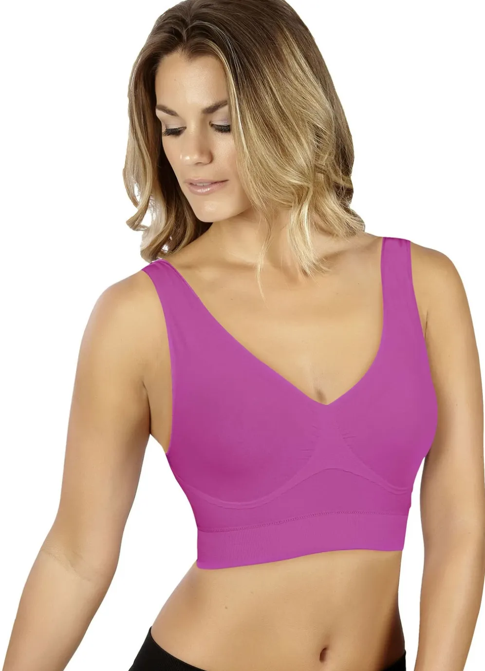 Dieser Wohlfühl-BH ist angenehm leicht und bietet dank der nahtlosen Verarbeitung und dem besonders komfortablen und extra weichen Stoff den idealen Tragekomfort. Ohne störende Bügel, Klammern oder Haken. Durch die nochmals verbesserte Qualität wurden mehrere Stellen am BH doppelt verstärkt. Der Wohlfühl-BH ist dank der perfekten Passform und den weichen Komfortträgern für jeden Körperbau geeignet.