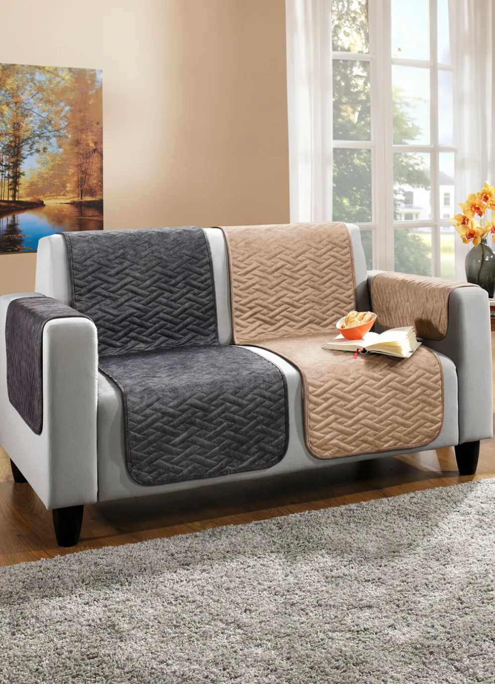 Absolut edle Wohnaccessoires in Wildleder-Optik mit Anti-Fleck-Ausrüstung sowie hübscher Bandeinfassung. Die Anti-Rutsch-Rückseite sorgt dafür, dass die Schoner auf Ihren Polstermöbeln immer an Ort und Stelle bleiben. Die Qualität: 100% Polyester. Waschbar bis 30 °C