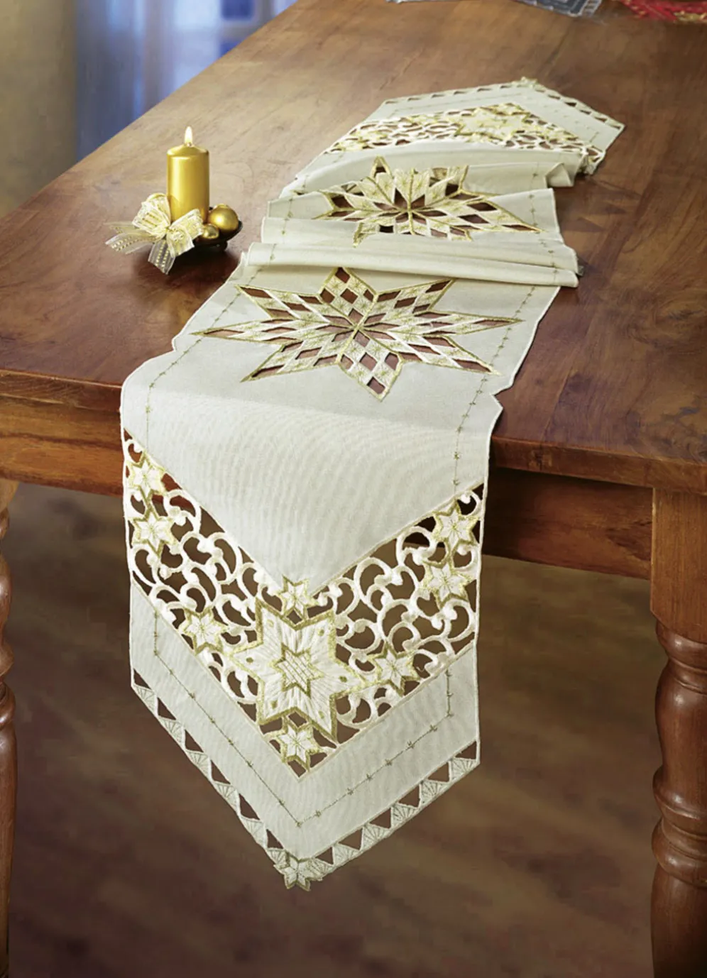 Ein wahrer Sternenregen erfreut Sie auf dieser wunderhübsch bestickten Tischdekoration, mit der Sie festliche Akzente setzen können.