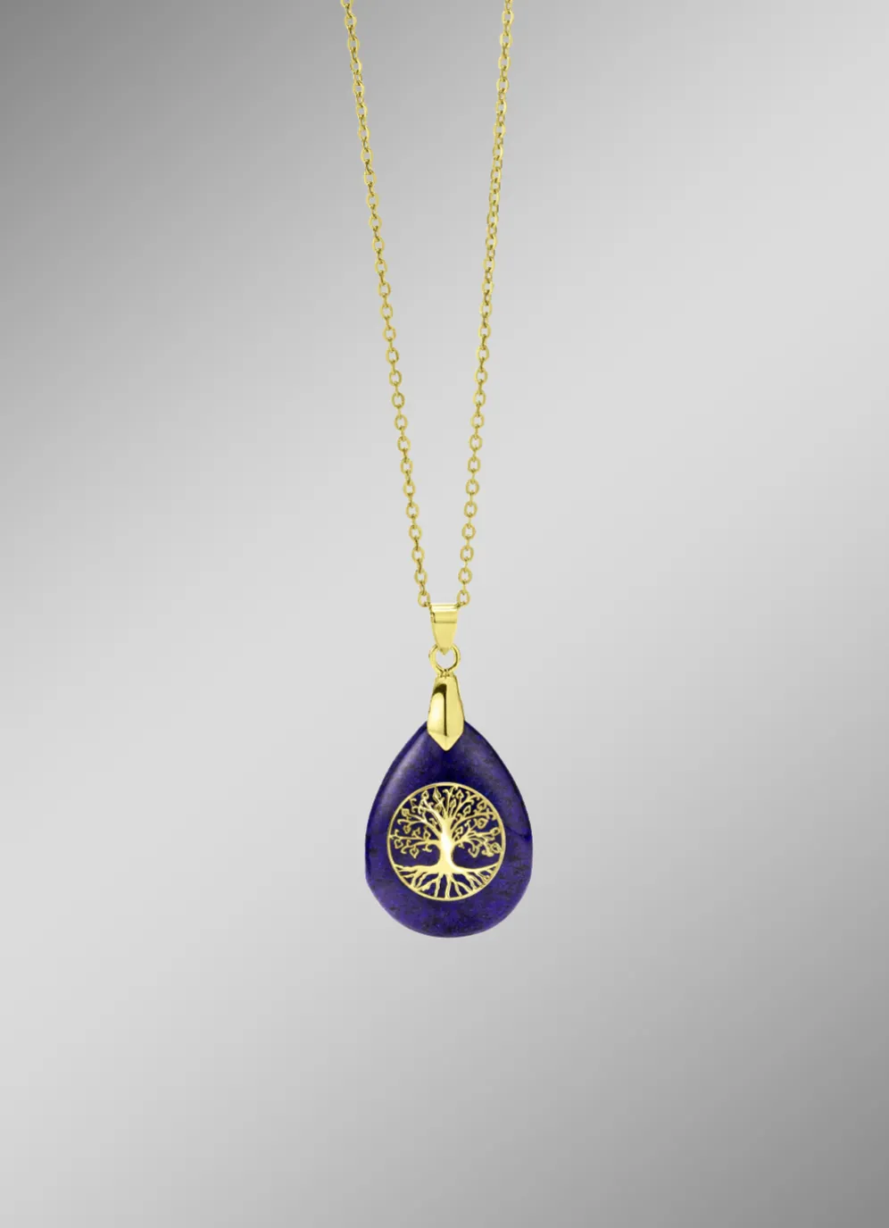 Dieser wundervolle Anhänger besteht aus vergoldetem Edelstahl und ist mit echt Lapislazuli verziert. Das Design des Anhängers zeigt den „Lebensbaum“ und hat die Maße von ca. 25×33 mm. Dieses Schmuckstück wird mit einer Ankerkette geliefert, die eine Länge von ca. 45 cm hat und eine Verlängerung von ca. 5 cm, die es ermöglicht, die Kette individuell anzupassen. Der Verschluss ist ein praktischer Karabiner, der für einfaches An- und Ablegen sorgt. Der Edelstein-Anhänger ist nicht nur ein stilvolles Schmuckstück, sondern symbolisiert auch den „Lebensbaum“, der in verschiedenen Kulturen als Symbol für Wachstum, Kraft und Wiederkehr des Lebens steht. Ein echter Blickfang und eine bedeutungsvolle Ergänzung für Ihre Schmuckkollektion.