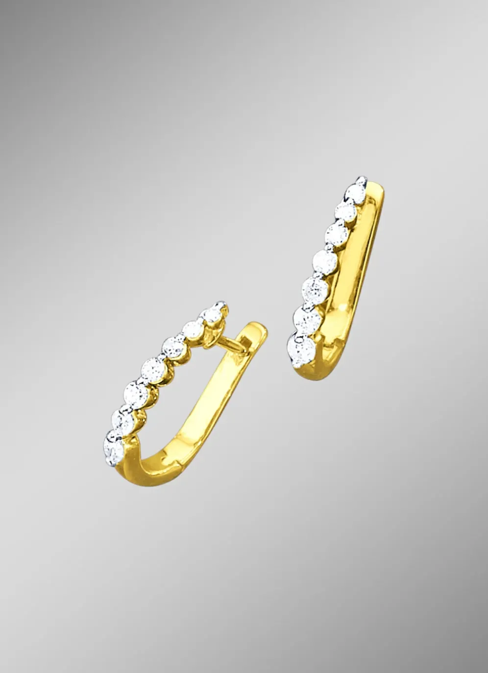 Diese hochwertigen Klappcreolen sind treue Begleiter. 14 Brillanten, zusammen 0,50 ct., Weiß, Piqué 2, und das klassische Design machen die zeitlose Eleganz dieses 18 mm langen Ohrschmucks in Gold 585/- fein aus. Die funkelnden Edelsteine lassen die dezenten Creolen in ungeahntem Glanz erstrahlen.