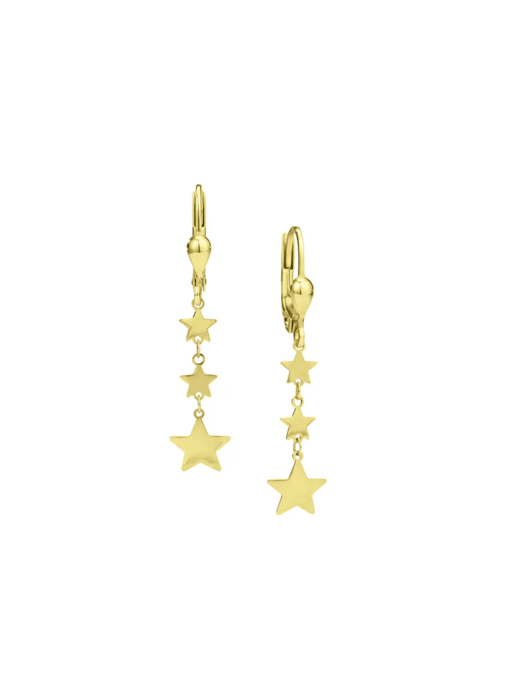 Diese Ohrringe aus Gold 585/- fein bringen Ihre Persönlichkeit zum Strahlen. Diese Ohrringe bestechen durch ihr elegantes Design, das aus mehreren Sternen besteht, die aneinandergereiht sind. Die Sterne variieren in der Größe und verleihen den Ohrringen einen dynamischen und lebendigen Look. Die Ohrringe sind mit einem Brisurverschluss ausgestattet, der einen sicheren und bequemen Halt garantiert. Die Ohrringe haben eine Länge von 37 mm und passen perfekt zu jedem Outfit und Anlass.