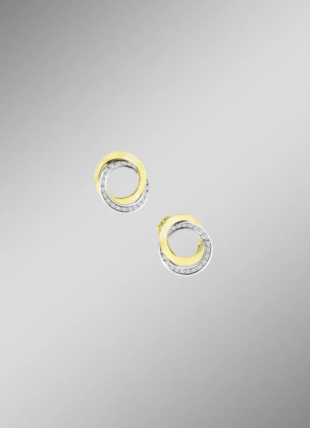 Diese Ohrstecker aus Silber 925/- fein kombinieren stilvoll zwei ineinandergreifende Ringe in Bicolor-Optik. Mit einem Durchmesser von je 15 mm und einem Ring, der mit funkelnden synth. Zirkoniasteinen besetzt ist, strahlen diese Schmuckstücke eine besondere Raffinesse aus.