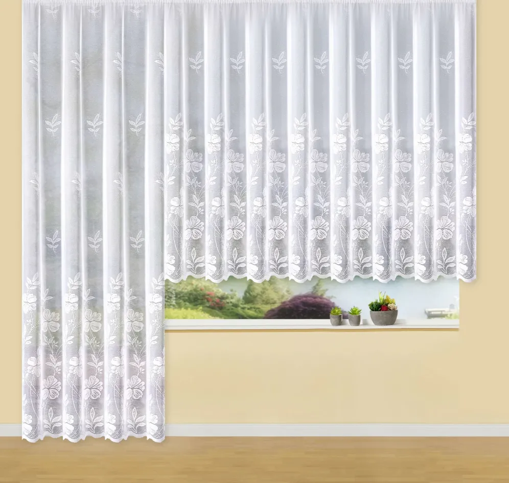 Dieser zauberhafte Langstore mit gebogtem Abschluss macht jedes Fenster zu einem Blickfang! Mit Automatikfaltenband 1:2,5. Bitte bestellen Sie die 2,5-fache Leisten- bzw. Dekobreite.