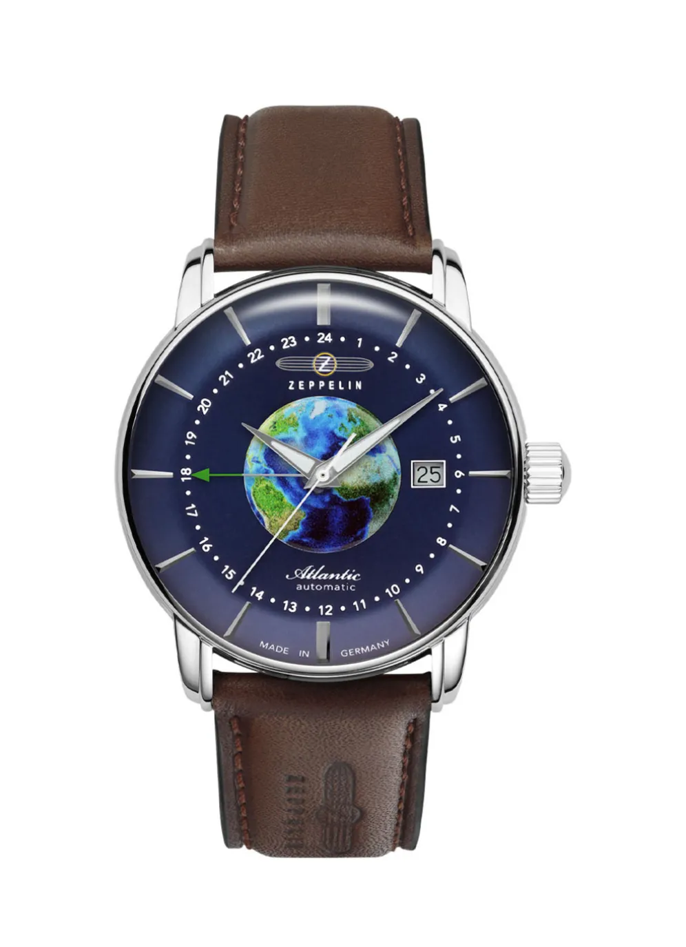 Die Zeppelin Atlantic ist eine Uhr, die in Deutschland hergestellt wird und somit für höchste Qualität und Präzision steht. Sie hat 24 Steine, die für eine hohe Ganggenauigkeit sorgen.