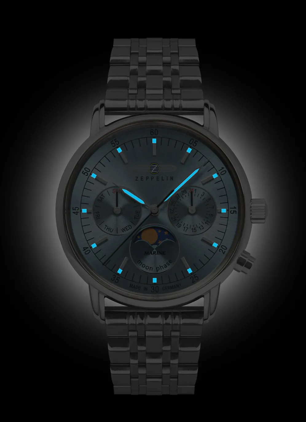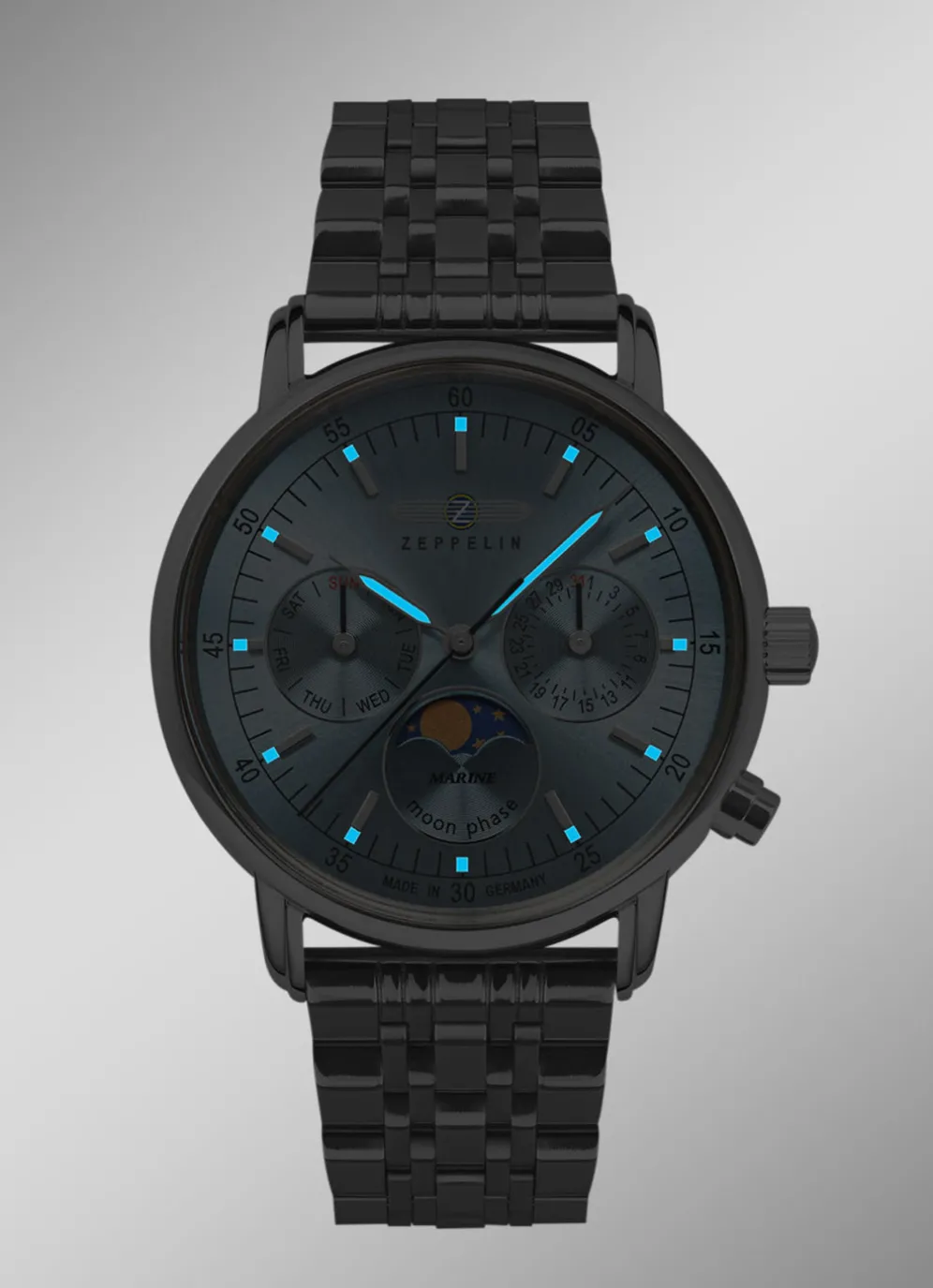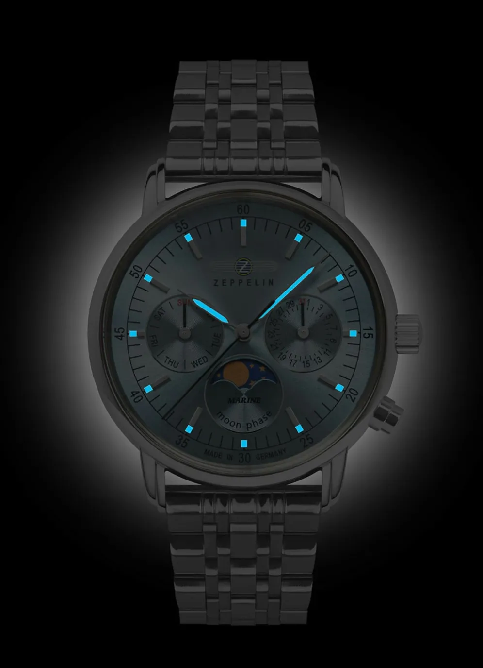 Sie lieben das Meer, die Schiffe und die Abenteuer? Dann ist die Zeppelin LZ 14 Marine die perfekte Uhr für Sie. Diese Damenuhr ist eine Hommage an die legendären Zeppeline, die einst die Welt eroberten. Mit ihrem edlen Design, ihrem hochwertigen Quarzwerk und ihrem eisblauem Zifferblatt mit Datum, Mondphase und Wochentag ist sie ein echter Hingucker an Ihrem Handgelenk.