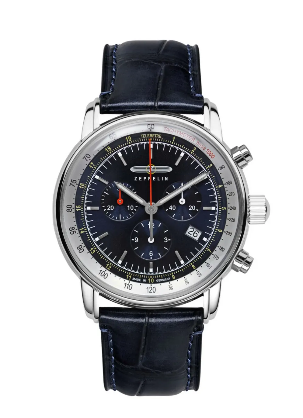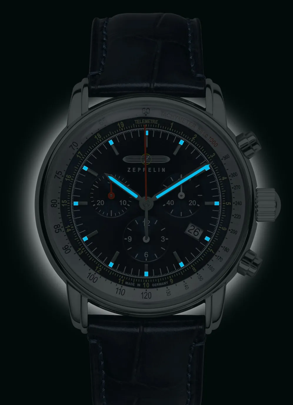 Die Zeppelin LZ 14 Marine ist mehr als nur eine Uhr. Sie ist ein Chronograph, der Ihnen viele nützliche Funktionen bietet. Sie können die Zeit stoppen, das Datum ablesen und die Leuchtzeiger im Dunkeln sehen. Die Uhr ist bis zu 5 bar wasserdicht, sodass Sie sie auch beim Schwimmen oder Tauchen tragen können.
