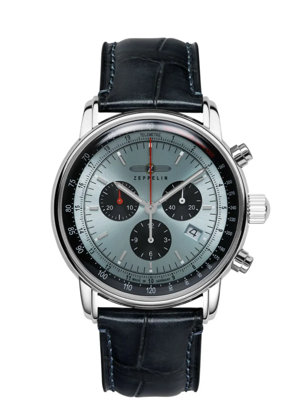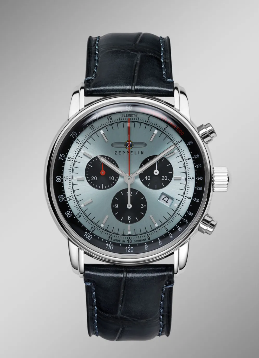 Die Zeppelin LZ 14 Marine hat ein robustes Edelstahlgehäuse mit einem Durchmesser von 42 mm. Das eisblaue Zifferblatt erinnert an den Himmel und das Wasser. Die Uhr verfügt über einen Quarz-Antrieb, der für Präzision und Zuverlässigkeit sorgt. Das Lederband mit Dornschliesse ist angenehm zu tragen und passt zu jedem Outfit.
