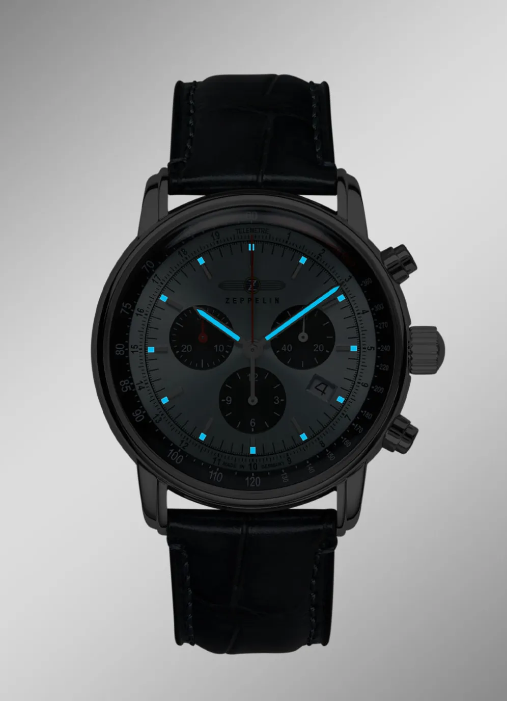 Die Zeppelin LZ 14 Marine ist mehr als nur eine Uhr. Sie ist ein Chronograph, der Ihnen viele nützliche Funktionen bietet. Sie können die Zeit stoppen, das Datum ablesen und die Leuchtzeiger im Dunkeln sehen. Die Uhr ist bis zu 5 bar wasserdicht, sodass Sie sie auch beim Schwimmen oder Tauchen tragen können.
