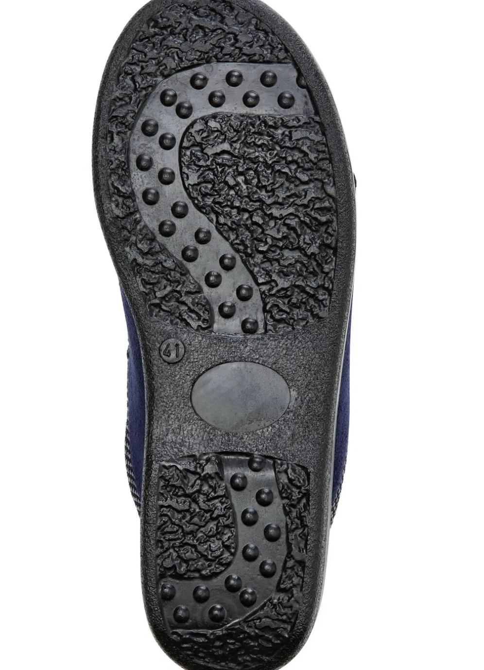 Hausschuhe aus weichem, kaschiertem Veloursmaterial, mit seitlichen Gummizügen: in Weite H, anatomisch geformtes Fußbett sowie superleichte PU-Laufsohle