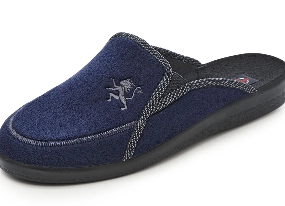Zweierpack, klassische Herren-Hausschuhe, Weite H, mit Gummizug in Blau+Schwarz und in Größe 42.
