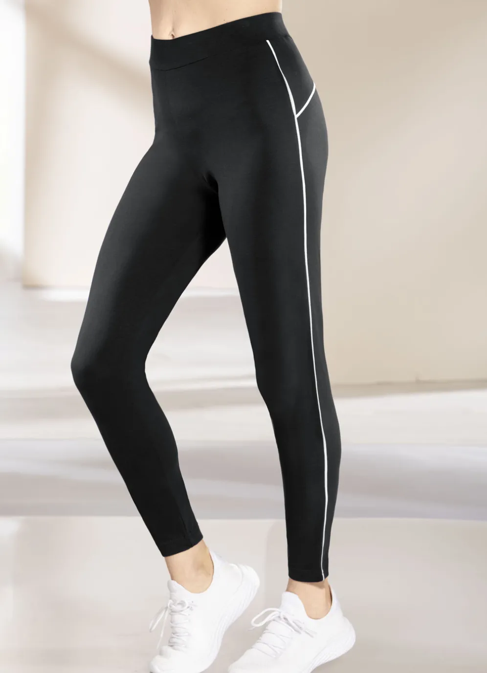 „Plantier”-Leggings im praktischen Zweierpack, mit Dehnbund sowie Kontrastpaspel am Gesäß und seitlich.