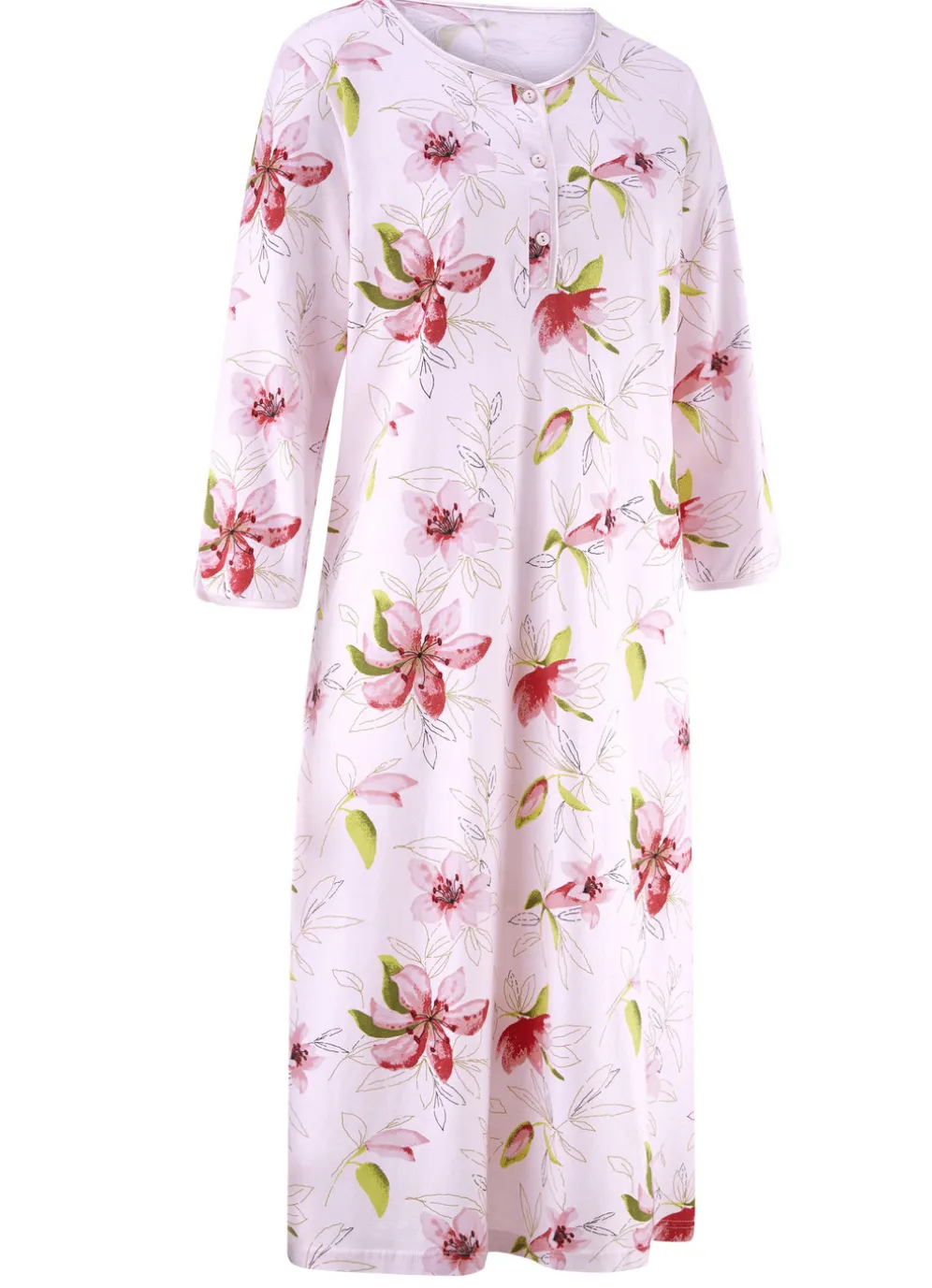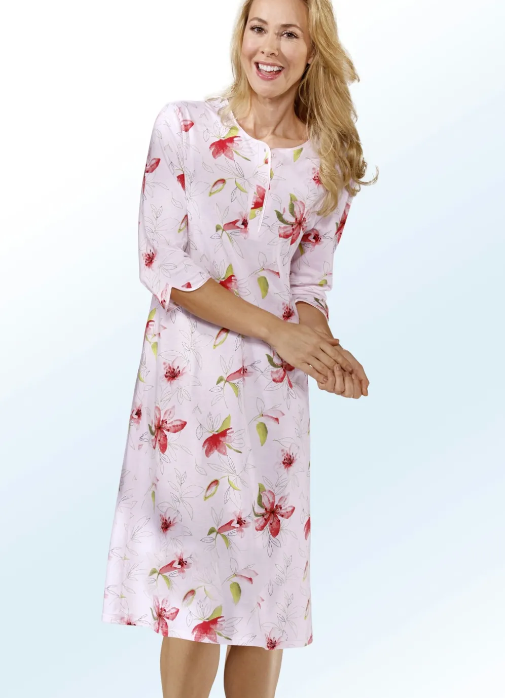 Zweierpack Nachthemden, 3/4-lange Ärmel mit Knopfleiste in 1X Rosé-Bunt, 1X Rosé und in Größe 38.
