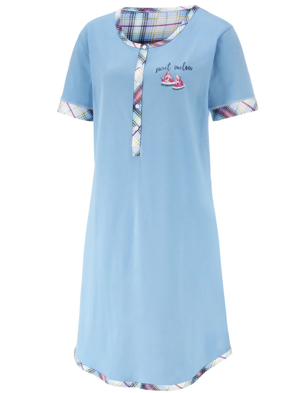 Kürzer geschnittenes Nachthemd im Zweierpack! Knopfleiste, Einfassungen, platzierter Druck, Blende an den Abschlüssen der kurzen Ärmel, abgerundeter Saum sowie innerer Rückensattel.
