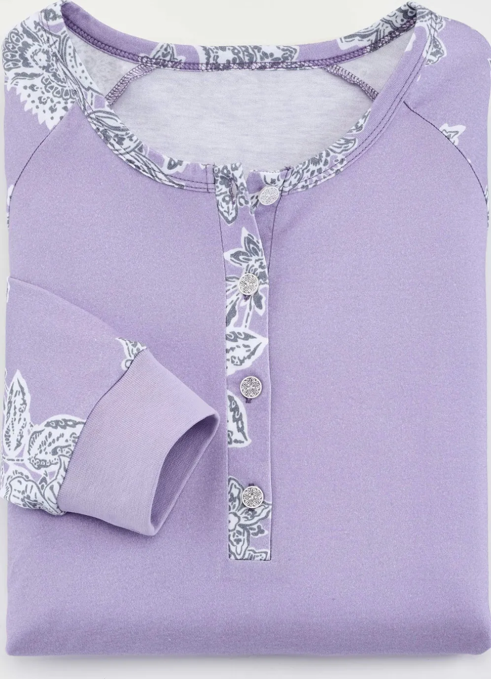 Knielange Nachthemden im vorteilhaften Zweierpack! Einfassung am Halsausschnitt und entlang der Knopfleiste, Schultereinsätze sowie Bündchen an den Abschlüssen der langen Ärmel.