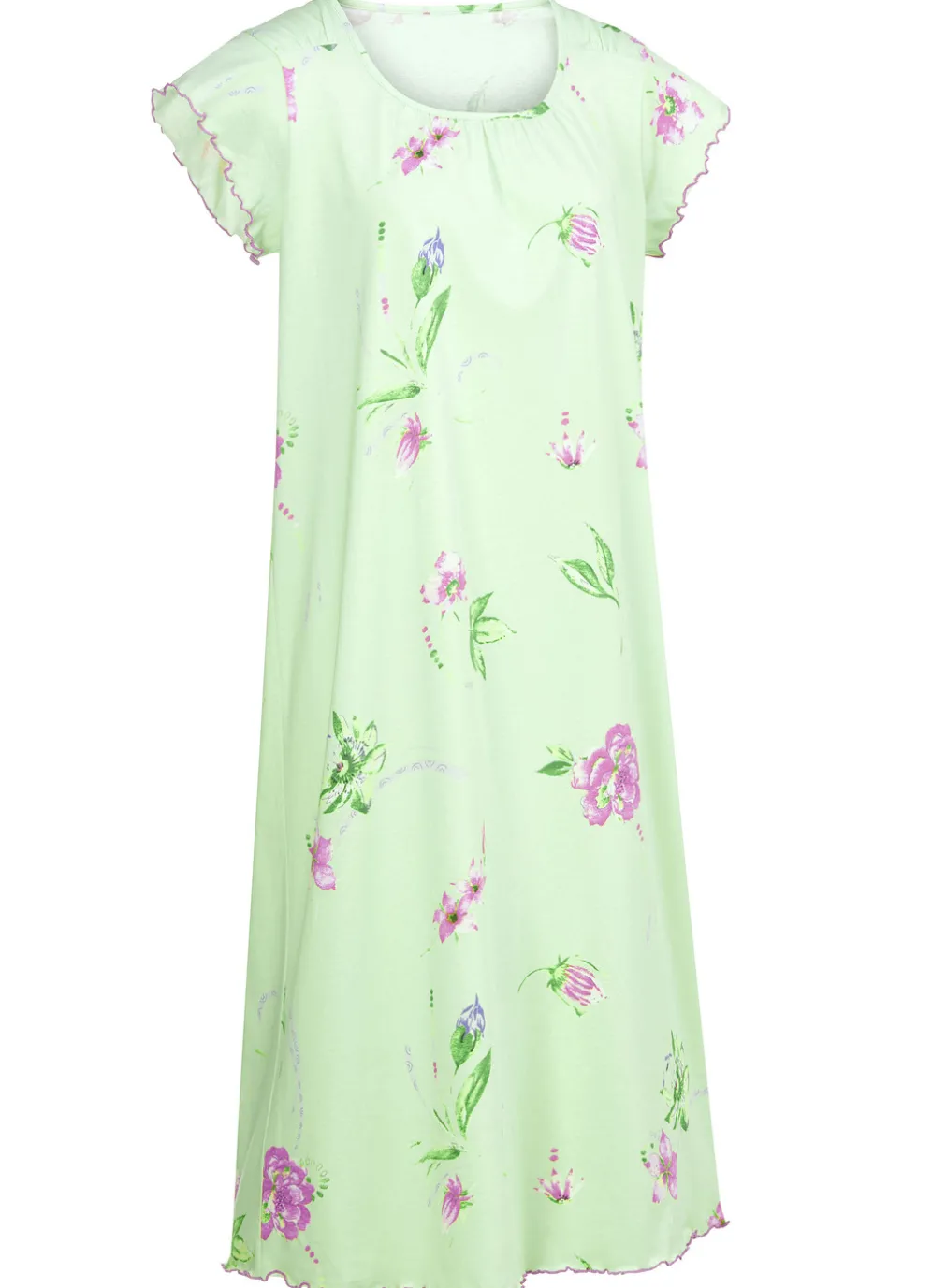 Im preiswerten Zweierpack erhalten Sie dieses wadenlange Nachthemd mit Schulterpasse, Raffungen sowie gebogten Abschlüssen an den kurzen Ärmeln und am Saum.