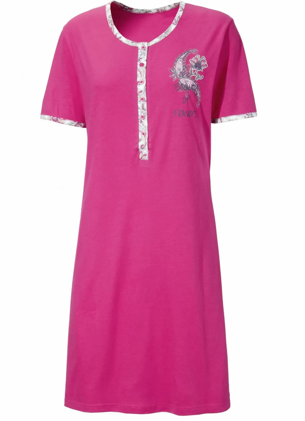 Zweierpack Nachthemden mit langer Knopfleiste, Stickerei sowie kurzen Ärmeln in 1X Fuchsia, 1X Lagune und in Größe 36.