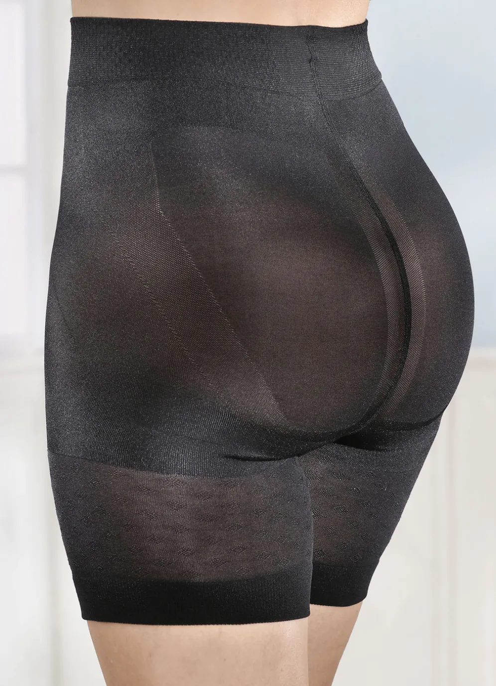 Figurformende Panty mit eingestrickten Stützzonen, die sanft Bauch, Po, Hüfte und Oberschenkel