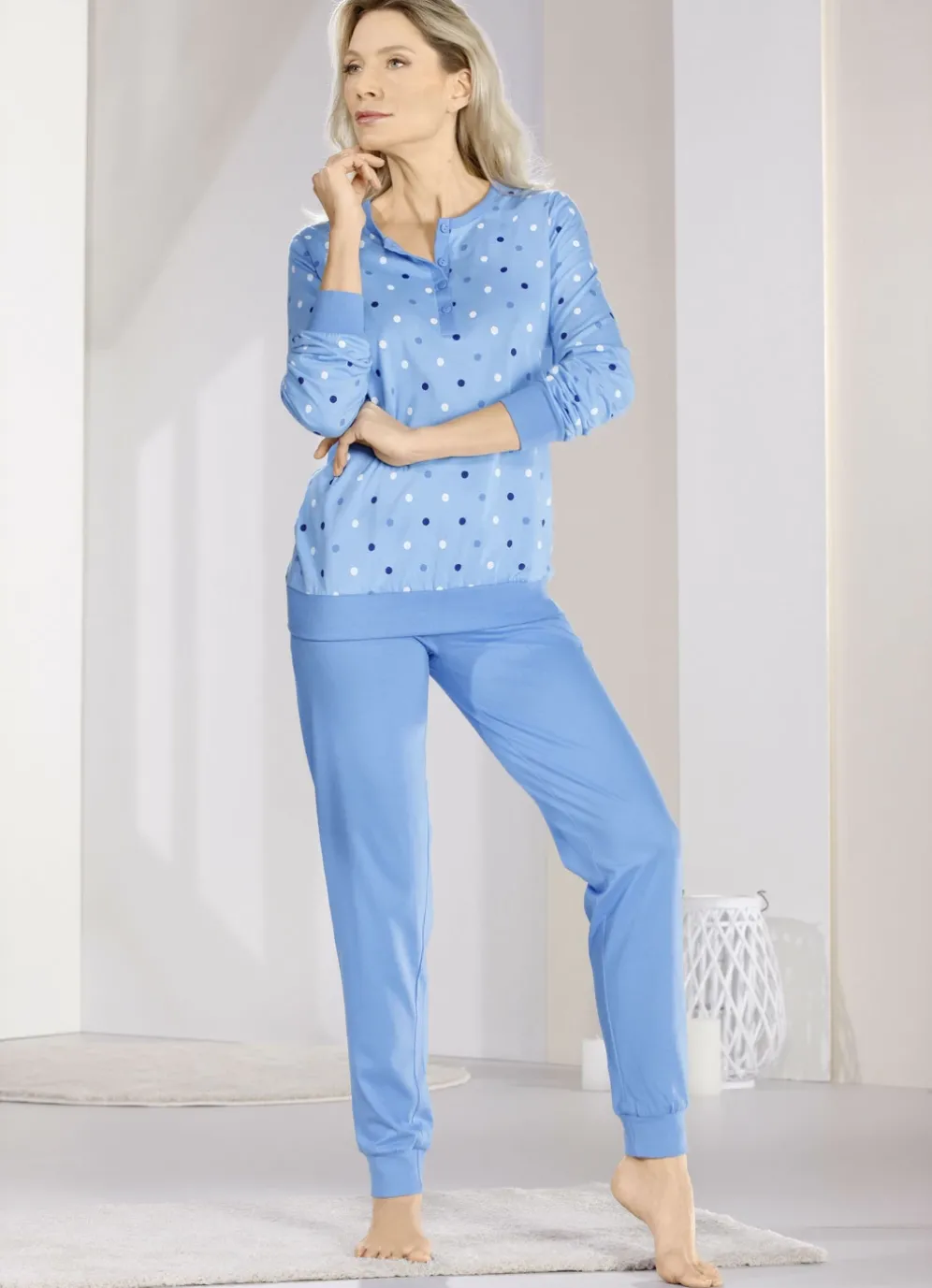Schlafanzug im Zweierpack, mit Bündchenabschlüssen am Ärmel und Saum. Oberteil mit Knopfleiste.