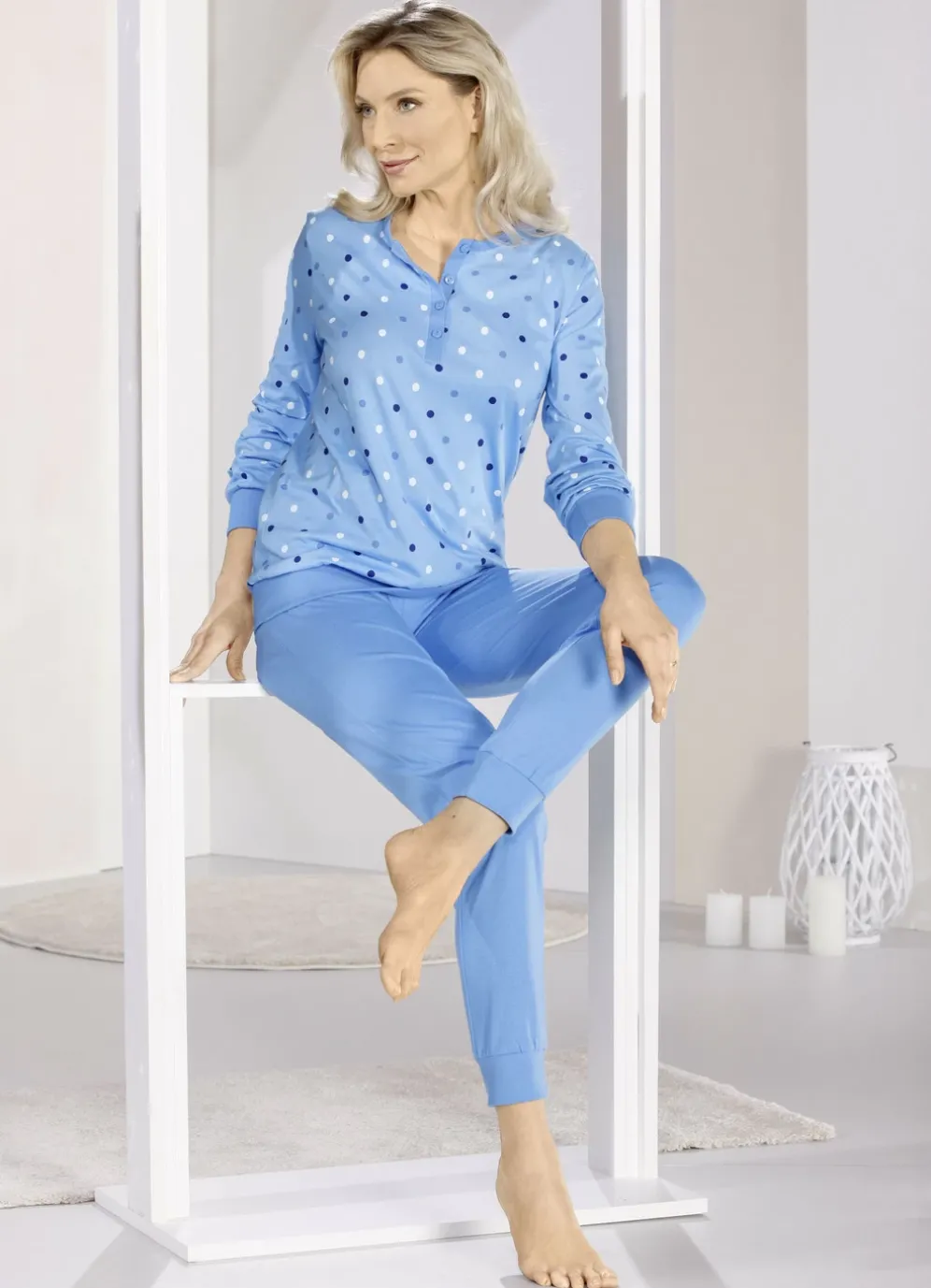 Zweierpack Schlafanzüge mit Bündchenabschlüssen in 1X Hellblau-Azur, 1X Mint-Lagune und in Größe 36.
